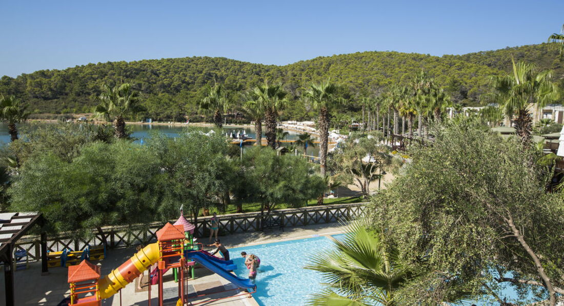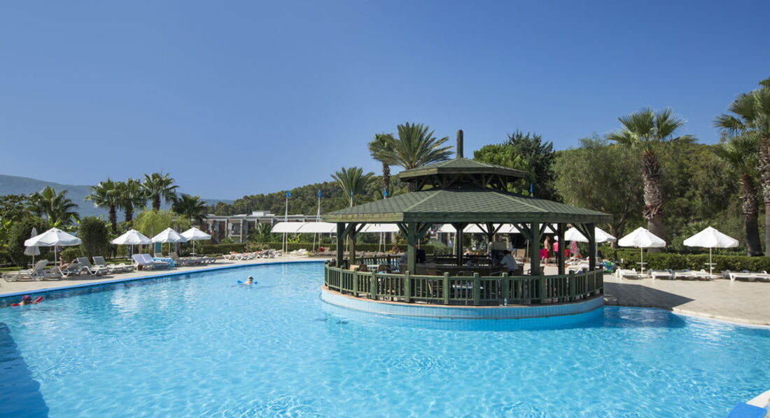 Хотелось бы дать отелю объективную оценку. Отдыхали с 5.07-11.07.2015. От аэропорта Бодрум ехать минут 10-15. Сам отель стоит обособленно от населенных пунктов, до ближайшей деревни 5 км. Первое, что бросилось в глаза-огромное количество турецких отдыхающих.Мы жили в фэмели в анексе. Номерной фонд стандартный,все скромно. Кондиционер индивидуальный-порадовало.У анексов очень сильно пахнет канализацией.Очень удобен главный ресторан,отдельно стоящее здание на берегу залива.Моря НЕТ, как писалось в предыдущих отзывах. Глубина сразу после двух шагов. Очень грязные бассейны,прошу обратить внимание на данный факт руководство отеля.Еда ОТЛИЧНАЯ !!! Молодцы! Единственное,что удивило-кофе не варят ни в лобби ни в ресторане. Кофе только из автоматов! Персонал приветливый.Анимация как везде.