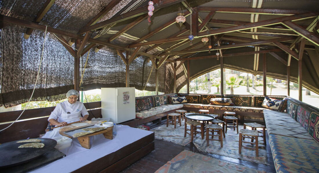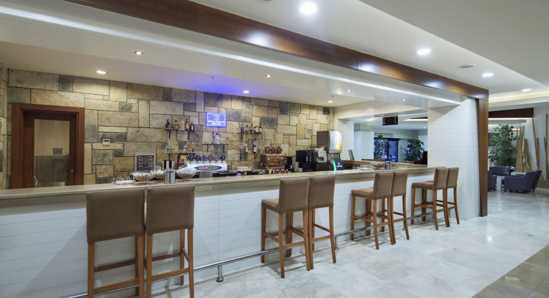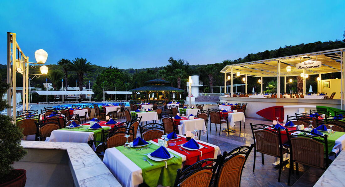 Бари та ресторани: головний ресторан розрахований на 624 особи (критий, з кондиціонером, літня тераса, дитячі стільці), лобі-бар (10:00 – 24:00), бар на пляжі (10:00 – 08:00), диско -бар (23:00 - 02:00) та ін. 3 ресторани A la Carte: італійський, турецький, середземноморський - відвідування 1 раз за час перебування безкоштовно.