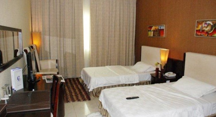 Летали отдыхать от туроператора Лаки Гид, отталкивались естественно от цены. Летели с целью отдохнуть и сделать зубы. В аэропорту встретили и доставили в отель. Разместили быстро в течении 5-10 мин, дали двухместный номер на 6 этаже. Номер оказался комфортным и уютным, чего совсем не ожидали от 2-х звезд. Единственное номер был прокуренный, но мы открыли окно и быстро устранили этот минус. Убирались в номере ежедневно, меняли постельное белье и полотенца. Расположение в центре Шарджи, поэтому до море приходилось добираться либо на такси либо на автобусе от отеля. Но автобус отвозит на пляж только один раз, утром в 9:30 и забирает в 12. Это тоже конечно не совсем удобно. Пешком идти до пляжа очень далеко. Рядом с отелем находится торговый центр Мегамолл. Цены там такие же как и в Москве. Так же там можно поменять деньги или снять с карточки и не плохо перекусить. В отеле у нас был завтрак и ужин по талонам. Кормили очень даже хорошо, но из фруктов был только арбуз по утрам и все.