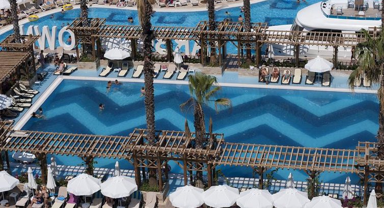 Отель хороший. При прилете отправили на завтрак, после завтрака сразу заселили. Уборка каждый день. Белье и полотенца меняли через 3-4 дня. На день рождения заказывали комплимент: Бутылка вина и фрукты в номере. Питание было обильное. Было выбрать из чего. Просто приелось уже к десятому дню :-). Дети объедались мороженым. Бассейны шикарные, детское отделение даже было крытое. Пляж недалеко. На пляж мы ходили пешком, а обратно возвращались на тракторе с прицепом. Детям было прикольно. Лежаков на пляже хватало. Были спасатели (на нашем пляже двоих видела постоянно). Однажды мы потеряли ребенка 5 лет: он игрался на песочке, а потом пошел искать нас и заблудился между лежаков, и потом на берегу. Так мы нашли его возле спасателей. Они увидели плачущего ребенка и оставили возле себя. Немного навязчив дополнительный сервис: по 3-4 раза в день подходили, предлагали водные развлекаловки. Анимация для детей была, но через 2 дня детям надоело. Больше играли на детской площадке. Аквагорки были просто супер. Правда кататься на них можно было только в определенное время. В общем мы остались довольны.