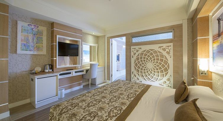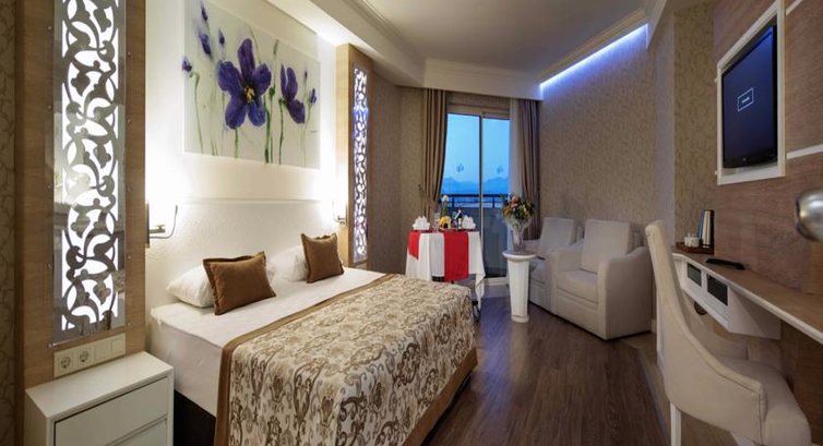 Отдыхали в конце июня 2015г. Брали на двоих номер "Стандарт"...В отель прибыли около 11 утра. При заселении было ооочень много народу на ресепшн, ввиду чего пришлось ждать до 14. Без проблем оставили вещи в лобби и пошли покушали. К 14 вернулись, на ресепшн сказали, что номер наш пока не готов...из-за чего отель нам любезно предоставил номер категории "Сьют" (к слову, классный двухкомнатный номер). Дали с видом на парковку сотрудников отеля. Сначала хотели поменять, но отказались от этой мысли дабы опять не толпиться в лобби среди окружающих. И не пожалели (со стороны бассейна постоянно играет музыка, здесь же было тихо). Обслуживание - постель и полотенца регулярно меняли, а вот чего и сколько в мини-бар положили,нужно отслеживать! Но если указываешь им, что чего-то не доложили, тут же ошибки свои устраняют.Питание - отличное, всего много и все вкусное!!! Особенно восхищала жареная рыбка - вот уж точно пальчики оближешь. Безумно вкусное мороженое на -2 этаже. Брали вместе с ним кофеек и на воздушке отдыхали))) Кайф! Безумно вкусные в отеле айран и гезлеме (рядом со спа-салоном и кафе на 2ом этаже женщина сидит на открытой веранде и печет эти гезлеме) Единственный минус-было очень мало фруктов: апельсины (абсолютно не сочные) и яблоки... может в конце июня не сезон еще? До моря идти через территорию нашего отеля и соседнего минут 7-8... но кому очень лень - каждые 20-30 мин.ходит паровозик... очень удобно, особенно с пляжа добираться. Пляж -нормальный: лучше, чем галечный в Греции, но, однозначно хуже Доминиканского) Самая большая беда - огромные валуны в море!!! Очень аккуратно заходите, особенно при высоких волнах. За время нашего отдыха многие там ножки покалечили. Только после массовых возмущений администрация отеля удосужилась флажки поставить напротив тех мест, где камни. Развлекаловка - вечером были массовые пляски (сначала на воздухе, после 1 ночи -клуб в помещении на -2 этаже). Там же есть кинотеатр, но за 2 недели ни разу не видела, чтобы он работал.Всем советую хамам, но не в отеле. Через дорогу, напротив отеля, если пройти влево буквально 3-4 торговых лотка, увидите палатку с путешествиями, там русская женщина туры продает. Так вот, в связи с тем, что, как она выразилась, еще не сезон был, сделала нам скидку - поездка в хамам с 40 мин.массажем нам обошлась в 30$ на двоих. ООООЧЕНЬ ПОНРАВИЛОСЬ!!!! Намыли, намяли...Все с вниманием и заботой! Вышли жутко помолодевшими!!!))) После этого сходили в отельный хамам...одна печалька(((( Заплатили 80$ и очень пожалели... Помыли нас в хамаме, положили на шезлонги у закрытого бассейна. Чай принесли только полчаса спустя. На массаж пригласили спустя час, когда человек уже весь остыл да и замерз... Массаж с кремом, а не с маслом. Массажист с руками не откуда надо... Вообщем, нам стало жалко и денег, и времени на эту дрянь потраченного...Магазинов вокруг отеля масса, ассортимент везде один и тот же... Два раза были в аля-карт: ресторан Паша и яхточка в бассейне. Оба понравились. В целом, отдых был супер!!! С удовольствием посетили бы этот отель вновь! Жаль, что такая обстановка политическая нынче сложилась((((