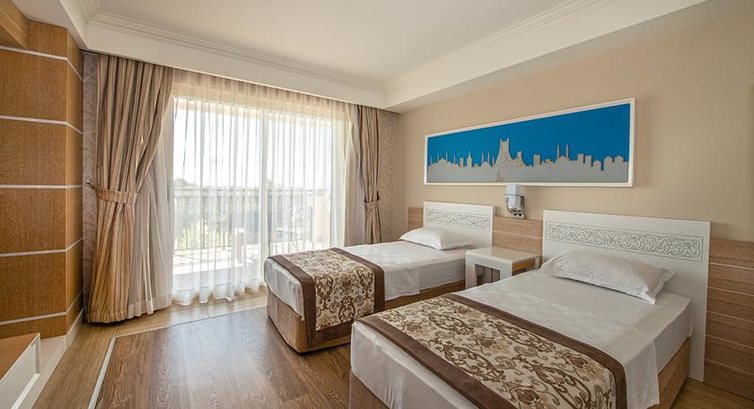 Здравствуйте! Отдыхали в этом отеле с 06.09.15. по 16.09.15. Всей семьей, с мужем и двумя детьми ( 2 года и 3 года). Трансфер у нас был индивидуальный, поэтому добрались быстро. Разместили через 2 часа, бронировали стандартный номер, но заселили в семейный, что очень порадовало, без дополнительной платы. Номер очень понравился, все чистенько, аккуратно. Отель тоже очень понравился, отдыхали в Турции в первый раз, поэтому сравнивать не с чем, но тем не менее все очень понравилось, персонал вежливый, улыбчивый, на любую просьбу реагировали сразу. По поводу уборки в номере, за 10 дней убрались раза 4, что не понравилось,но на это особо внимание не заостряли. Бар пополнялся ежедневно. Ко дню рождения дочери в номер принесли карзину фруктов, открытку и бутылку вина, было очень приятно. По поводу питания, претензий никаких нет, все в большом изобилии, мясных блюд много было, рыба, фрукты, мороженое. Покушать можно было в любое время. Аквапарк отличный, много горок, покатались на всех и по много раз))). Коктейлей тоже большое множество, алькогольные, бесплатно. Детский бассейн тоже понравился, правда вода была прохладная, но честно говоря, прилетели не в бассейне купаться, а в море. Пляж понравился, песчанный, лежаки свободные всегда можно найти в любое время. Анимация была не навязчивая. На детской не были, т.к. практически всегда были на пляже. Дети бегали в детском городке, горки, качели, вполне детям хватили и понравились. В общем все понравилось. Спасибо!
