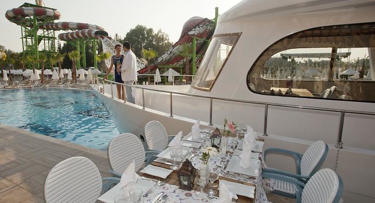 • ресторани a la carte: 7 (турецький, рибний, середземноморський, далеко-східний, мексиканський, міжнародний, дитячий ресторан тільки для дітей за попереднім записом, за тиждень проживання відвідування трьох ресторанів 3 рази – безкоштовно)