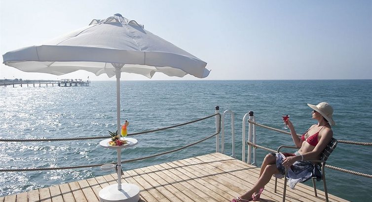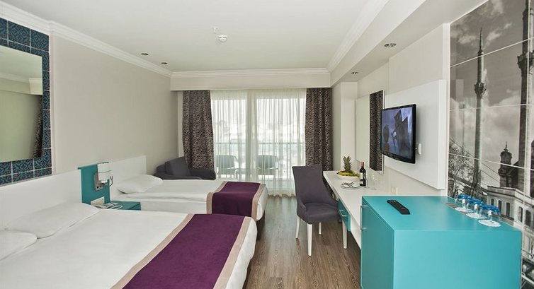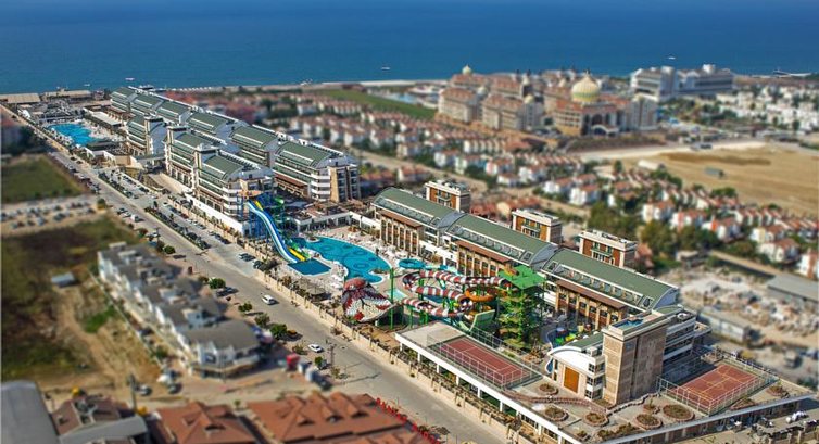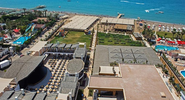 Отдыхали в этом отеле в конце октября 2016, с 22 по 30. Отель не плох, но много минусов. Брали номер с прямым видом на море, вид конечно был, но какой ... см. фото и поймете, кроме этого постоянный шум от кондиционеров соседнего отеля ... есть фото этих нарушителей тишины. По питанию, голодными не останетесь, но бывало пройдешь по ресторану и ничего не выберешь, делаешь второй заход и просто накладываешь ... в последние два дня вообще плохо было. Особое внимание стоит обратить на посуду, стекло и керамику ещё моют, а вот пластик грязный, взял белого вина в пластиковом бокале, так на нём была женская помада, да и вино отвратительное. Вечером скукота, развлекательная программа просто отсутствовала или была никакой. И ещё, много местных, турки, арабы и тд., особенно на выходных, если в процентах, то наверное 80% точно... По пляжу, очень нехватало "кораллок", см. фото. Номер убирали каждый день, но только по центру. Из плюсов, наличие аквапарка. Вообщем отдыхом довольны, море супер. А все эти минусы можно отнести на то, что уже был конец сезона и они просто забили на всё и на всех... Да и по номеру, если берете с видом на море, то требуйте этаж повыше.
