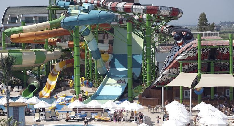 Аквапарк заслуживает отдельного внимания, не считая детских, есть 5 горок для катания в купальниках и 4 для катания на кругах, все горки по своему интересны, разная высота, разная скорость и разный драйв, на кобре например можно поехать по двум соседним руковам на балонах одновременно, аквапарк рекомендую!