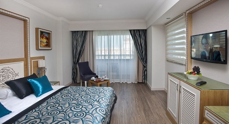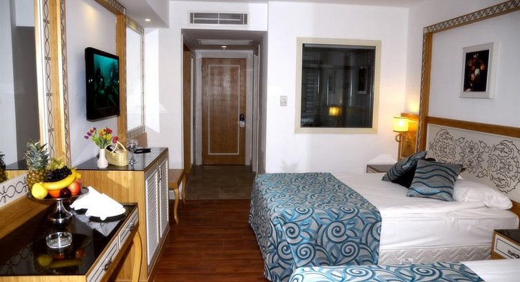 Отдыхали семьёй,с двумя детьми с 07.08.2015,девять дней.Заселили,как и было обещано,в 14.00.Очень хороший номер.Чистый,все новое,прекрасное расположение!!Все белоснежное!!Уборка номера каждый день.Ну все просто замечательно!!Персонал внимательный!Дети были в восторге от аквапарка.В ресторане все очень вкусно,всегда всего хватало.Море,правда,не очень чистое,но тёпленькое.Отель очень красивый и большой.Немного напрягало то,что очень много народу.Было много турков,иранцев,немцев...А так,все на 5+!!Рекомендую всем этот отель!!!
