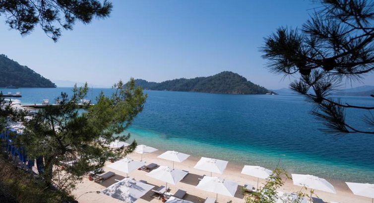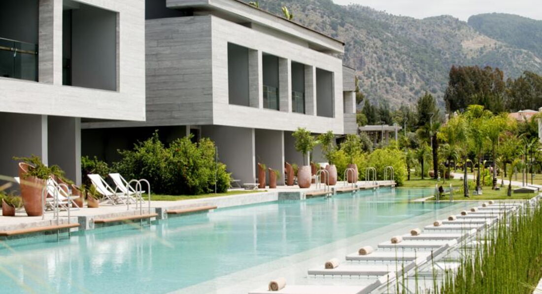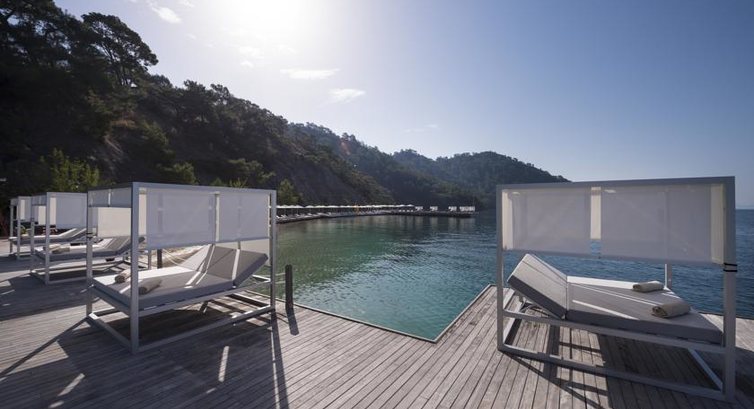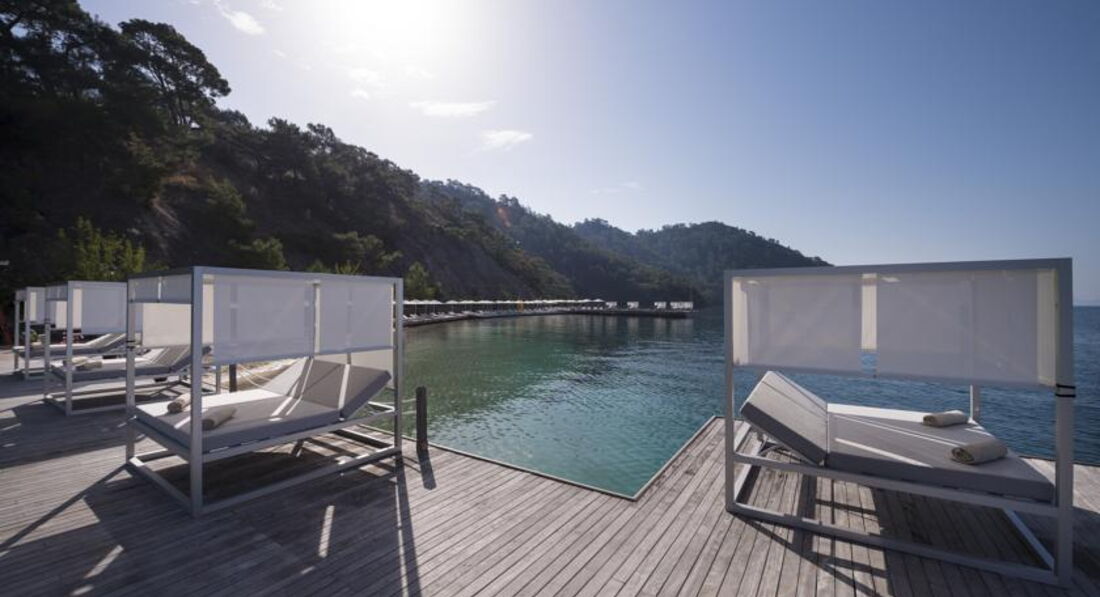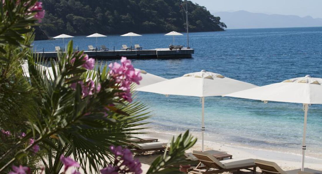 Готель розташований у тихому та мальовничому місці – у рибальському селі Гьочок, серед пишних садів Середземномор'я, з чудовим видом на гори, за 50 м від моря (причал для яхт). В архітектурі будівель поєднується теракотове римське оздоблення та середземноморські тони, які відображають атмосферу цього регіону. Готелю належить єдиний пляж у затоці Гьочок.