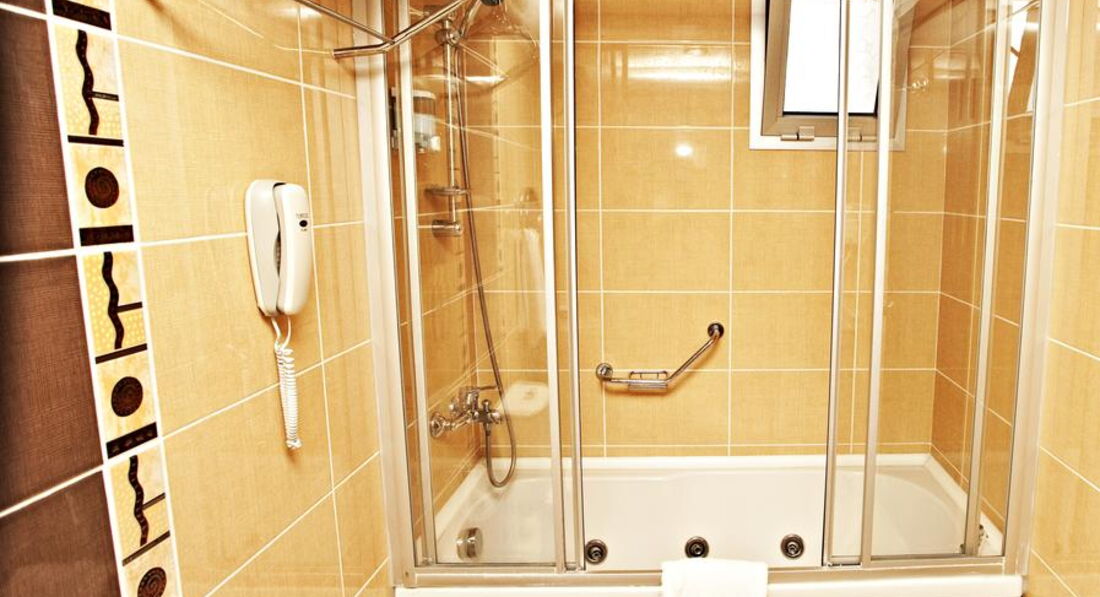 •ванна кімната з душовою кабіною.