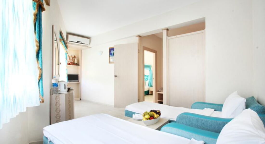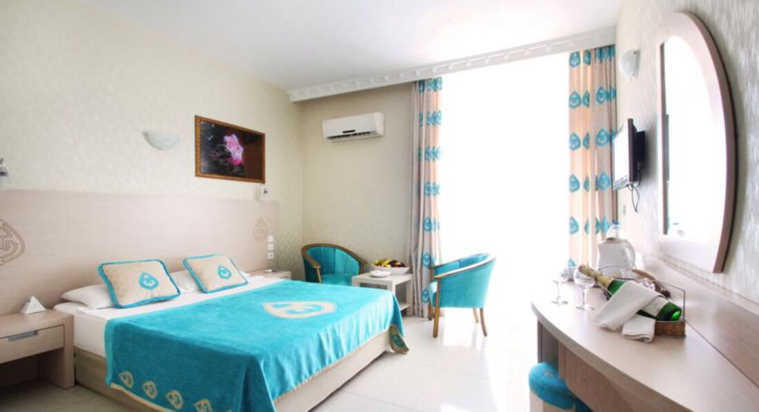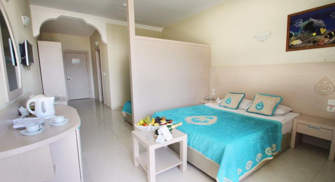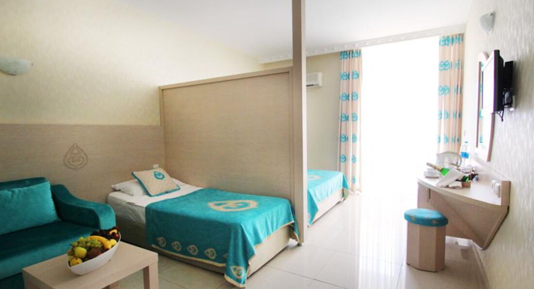 Отдыхали с 2.06 по 11.06 с двумя детьми , в Турции далеко не первый раз сравнить есть с чем , скажу сразу , что я не привереда ..... Приехали в 20.30 , сразу ужинать отправили , потом проводили в номер , номер попался просто отличный, красивый вид и не близко к столовой , потому что сидя в столовой можно рассиатривать номера и балконы с купальниками и тд и тп ; вид был на бассейн . Уборка была каждый день , но как в большинстве случаев никудышная , размазаны волосы по всему полу, на балконе вообще ни разу не мыли, ну это конечно всё мелочи , я уже привыкла на это не обращать внимание , белье , полотенца меняли , гели , шампуни, конд. ставили . Территория очень красивая , всё в цветущих кустиках , много роз , прям красотища, вид на горы тоже отличный ,пляж хороший , завезли новые шезлонги , убирались на пляже , но только крупную грязь( стаканы) , места на пляже всегда были. Ходила на утреннюю гимнастику (йога), в 16.00— зумба очень даже ни чего и гимнастика и зумба , на аква аэробику не ходила , бассейны не люблю , в бассейнах вода теплая как в баньке , горки норм , но загорелой жопкой швы чувствовались , нам хватило и дети тоже накатались.