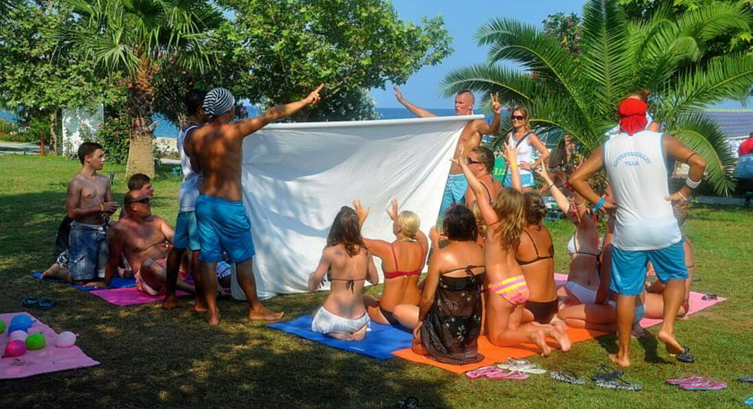 Каждое утро в 10 вас встречает анимационная команда, танцует танец отеля и объявляет какие спортивные мероприятия и во сколько. В 10.15 утренняя гимнастика, в 11.30 и 15.00 аквааэробика, в 16.30 зумба или танец живота. Также в 12 очень веселая игра у бассейна, в которую привлекаются почти все отдыхающие у бассейна. Параллельно с этим в 11.30 и 16.30 пляжный волейбол. В 12.00 и 15.00 водное поло, в 16.00 боча/дартс/другие игры.