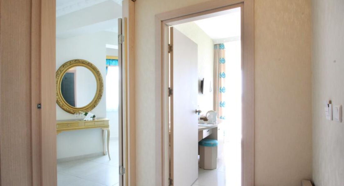 Територія поділена дорогою, є підземний перехід. Біля моря знаходиться активна та галаслива частина готелю: аквапарк, басейни, амфітеатр. Корпуси розташовані у тихішій зоні. Різноманітне харчування та уважний персонал. Рекомендуємо для активного відпочинку, у тому числі з дітьми.
