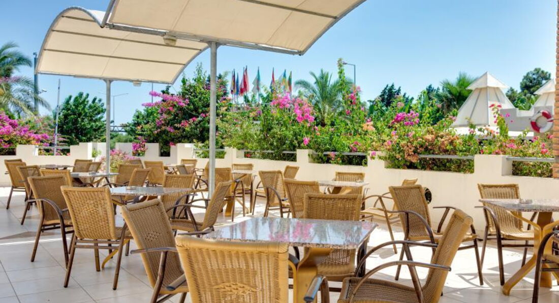 Бари та ресторани: головний ресторан розрахований на 350 осіб, критий з кондиціонером та терасою, є дієтичне та дитяче меню; бар на пляжі (10:00-24:00), бар біля басейну (10:00-23:00), лобі-бар (24 години), диско-бар (23:30-02:00) - напої платно, вхід безкоштовний; вітамін-бар – платно. 1 ресторан А"la Сarte: турецька - відвідування кожного ресторану за час проживання безкоштовно.