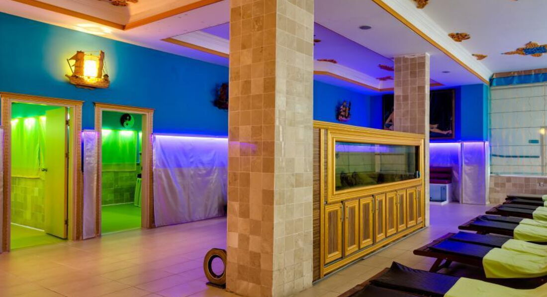 Отдыхали с парнем в сентябре 2018. Отели выбирали очень долго,ведь это наша первая поезда заграницу. В турагентстве сразу настроили,что отель будет никак 5 звёзд,а как 4. Разместили почти сразу,еда отличная,алкоголь нормальный. Аквапарк парня очень впечатлил. Анимация мне не особо понравилось, хотя всякие сценки и конкурсы были на высоте. Бассейн убирали каждый день. Каждый день в номер приносили 2 бутылочки воды (без газов). Посещали хамам,были под большим впечатлением! Очень советуем! Цена не большая- 20 долларов (с человека)