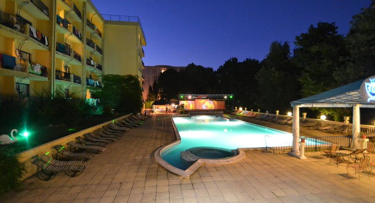 Ездили семьей и 2 детьми в начале сентября. Перед этим читала отзывы. Если быть объективными, то отель не соответствует 3 звездам. Начнем с того, что приехали с маленьким ребенком, были с коляской. Поселили нас на 3 этаже, Один лифт не работал, другой не останавливался на нашем этаже. Нас переселили на второй. Зашли в номер, а там на потолке червячки (от моли). Удовольствия, конечно, не было оставаться в этом номере. Переселили на первый этаж. Так как отель стоит вдоль дороги, то очень шумно оказалось, машины и автобусы едят не останавливаясь. Дверь на балкончик открывалась, если приложить максимум усилий взрослому, закрывалась на цепочку, так, что с улицы можно было легко открыть. Даже при закрытых дверях были слышны бесконечный лай собак и шум машин. Двери в ванную такие древние, что открывались и закрывались со скрипом. Телевизор не работал. Вода с утра текла чуть теплая (для нас это было важно, так как были с маленьким ребенком). То что там унитаз еле смывал и полотенце по одному на человека (вместо положенных 2), это ничего по сравнению с продавленными и старыми матрасами. Интерьер немного пошарпаный (может конец сезона?). Что касается сервиза- если оставляли 2 лева, то нам убирали в номере, если нет, то выбрасывали только мусор. Интернета в номерах нет, WF берет только возле лобби бара и то только за плату (мы готовы были заплатить, но интернет связь не доставала до нашего номера). Анимации нет, вечером возле бассейна устраивали дискотеку, благо что наш номер был на другую сторону. Лежаки старенькие, без зонтиков. Бассейн был чистый. У нас был завтрак и ужин. На завтрак, как у всех- сосиски, пару видов колбас, брынза сыр, джем, хлеб, макароны,огурцы, помидоры. Напитки в пластиковых стаканчиках- чай, кофе, 2 вида сока. Вода только из автомата для кофе - горячая. Фруктов не было ни на ужин ни на завтрак. На ужин тоже все более менее нормально, без изысков. Пару раз были пирожные и пицца. Наверное, для не претенциозных людей отель хороший, но я описала свои впечатления.