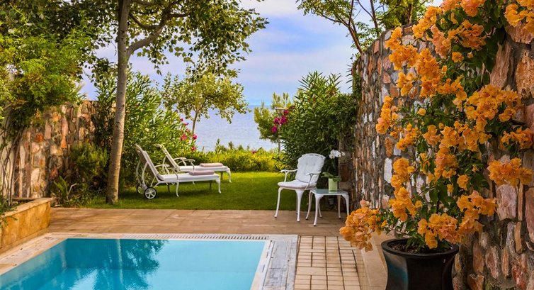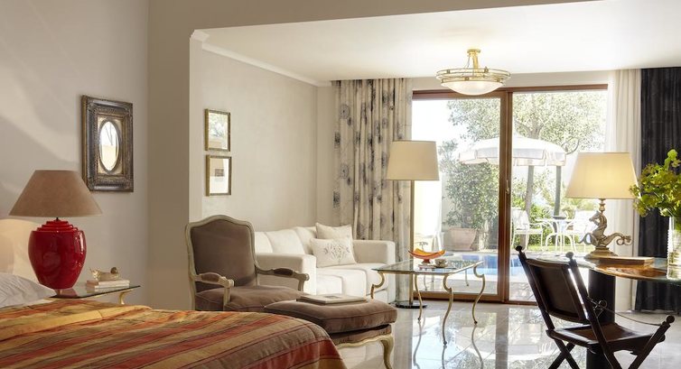 Типи номерів: junior suite (спальня з вітальнею зоною, осн. ліжко - дві односпальні або двоспальне, макс. 2 чол., 30-35 м2); deluxe junior suite (спальня з вітальнею зоною, осн.ліжко - дві односпальні або двоспальне, макс. 2 чол., 35-40 м2); suite (спальня з вітальнею зоною, осн. ліжко – дві односпальні або двоспальне, дод. – односпальне, макс. 3 чол., 42-58 м2); pool suite SV (вид на море, спальня з вітальнею, осн. ліжко – дві односпальні або двоспальне, дод. – односпальне, тераса з індивідуальним басейном з підігрівом, макс. 3 чол., 55-60 м2); danai suite (сумісні спальня з вітальнею з каміном, 2 ванні кімнати, осн.ліжко - дві односпальні або двоспальне, дод. - односпальне, макс. 3 чол., 75 м2); executive suite SV private pool (вид на море, спальня та окрема вітальня з каміном, осн.ліжко - двоспальне, доп. - Односпальне, тераса з індивідуальним басейном, макс. 3 чол., 75 м2); honeymoon executive suite private pool SV (вид на море, спальня та окрема вітальня з каміном, осн.ліжко - двоспальне, тераса з індивідуальним басейном, макс. 2+1 чол., 75 м2); mediterranean suite SV (вид на море, спальня та окрема вітальня з розсувними дверима, 2 ванні кімнати (1 з джакузі), осн. ліжко – двоспальне, доп. – односпальне, макс. 3 чол., 190 м2); suite 2-bedrooms (2 спальні (1 c вітальнею зоною), 2 ванні кімнати, осн. ліжко – двоспальне, дод. – дві односпальні, макс. 4 чол., 80 м2); executive suite 2-bedrooms SV (вид на море, 2 спальні (одна спальня поєднана з вітальнею), 2 ванні кімнати, осн. ліжко – двоспальне, дод. – дві односпальні, макс. 4 чол., 120 м2); presidential suite SV (вид на море, спальня, вітальня з каміном, осн. ліжко – дві односпальні або двоспальне, дод. – односпальне, 2 ванні кімнати, макс. 3 чол., 125 м2); danai villa SV (вид на море, 2 спальні (одна зі скляною стіною), вітальня з каміном, 2 ванні кімнати (1 - з гідромасажем), осн.ліжко - двоспальне, доп. - три односпальні, тераса з індивідуальним басейном, що підігрівається, макс 5 чол., 195 м2); green pearl villa (2 спальні (кожна з вітальнею), 2 ванні кімнати, окрема вітальня, їдальня, осн. ліжко – двоспальне, доп. – дві односпальні, індивідуальний басейн з підігрівом та освітленням у нічний час, макс. 5 чол., 450 м2); villa of blue riviera (3 спальні, 2 ванні кімнати, 2 WC, вітальня з баром і кухнею (дах вітальні — розсувний), оздоровчий центр (масажні ліжка, мармурова ванна, диван), в кожній спальні осн. ліжко – дві односпальні або двоспальне , додаткова – односпальна, сад (700 м2), тераса з індивідуальним басейном, макс. 6 чол., 450 м2); mandarin villa SV (вид на море, двоповерхова вілла, нижній поверх: 2 спальні, 2 ванні кімнати, вбиральня, вітальня з кухонним куточком, тераса з індивідуальним басейном, верхній поверх: спальня з вітальнею, ванна кімната, в кожній спальні осн. ліжко – дві односпальні або двоспальні, додаткові – односпальні, макс.6 чол., 750 м2); villa of greek riviera SV (вид на море, двоповерхова вілла, нижній поверх: 2 спальні (кожна з вітальнею зоною), 2 ванні кімнати, вітальня, кухня, басейн, що підігрівається, столова зона, верхній поверх: 2 спальні, 2 ванні кімнати, вітальня , тераса з басейном, що підігрівається, в кожній спальні осн.ліжко – два односпальні або двоспальне, додаткове – односпальне, макс.8 чол., 1 050 м2); white villa SV (вид на море, двоповерхова вілла, нижній поверх: 3 спальні, 3 ванні кімнати, гардеробна, вітальня з каміном, кухонний куточок, верхній поверх: спальня з вітальнею, ванна кімната, в кожній спальні осн. ліжко – дві односпальні або двоспальна, додаткова – односпальна, тераса з індивідуальним басейном, що підігрівається, макс.8 чол., 950 