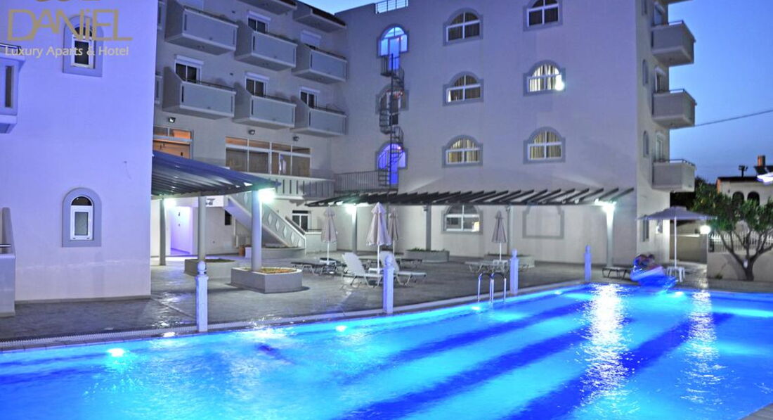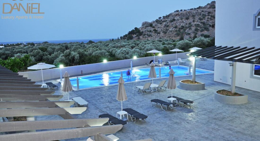 Апарт-готель дуже самобутній і повністю оновлений, він розташований на території курорту Ліндос, а саме в селі Калафос. Від узбережжя його відокремлюють 600 м-коду, а до села Ліндос 5 хвилин їзди. Збудований готель у 1993 році, а повний ремонт будівлі та номерів проводився у 2014 році.