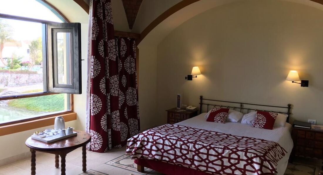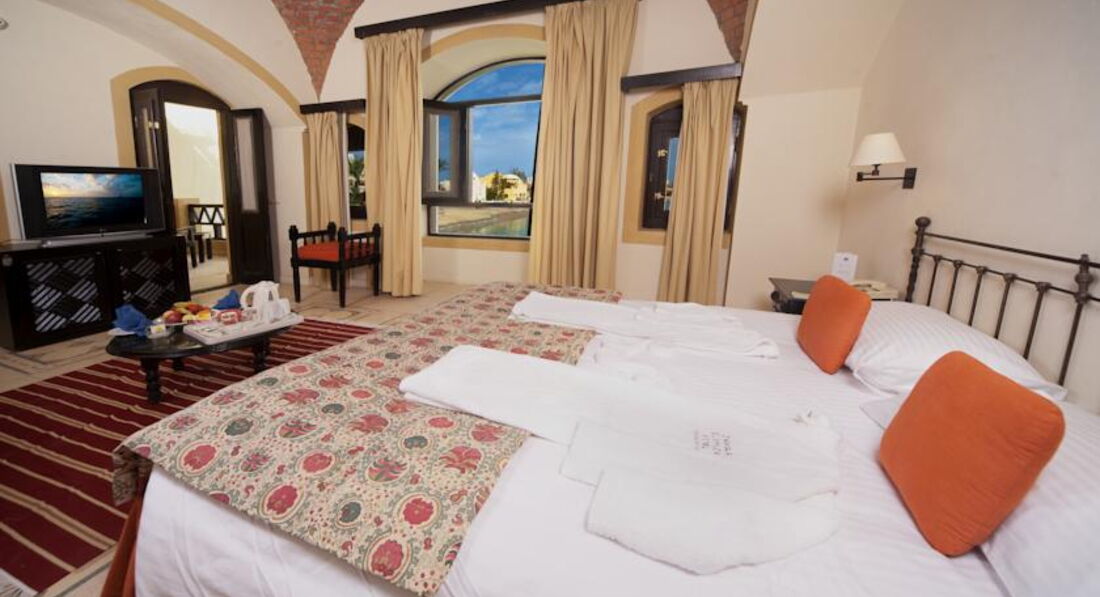 Сразу отмечу,получили именно то,что ожидали.Отдыхали с 12.10 по 16.10.14.Не буду повторять,что уже подробно описано.Только собственное мнение об отеле.Персонал- не навязчивый,но предупредительный.По первой просьбе поменяли неработающий холодильник.По собственной инициативе в течение нашего отдыха поменяли телевизор на новый (не спрашивал,только у нас или во всех номерах)По русски говорят и понимают ещё малова-то,но небольшого объема знания английского хватило,чтобы не ощущать дискомфорт.Маленьких детей было мало,поэтому наша внучка была очень заметна и шумлива.Но мы ни разу не услышали слова недовольства или замечания персонала.Питание в отеле на высоте: при соблюдении минимальных мер предохранения (поменьше сырых овощей и пить только кипяченную воду,благо в номере есть чайник)никаких неприятных последствий.Это особенность всех египетских отелей,убедились неоднократно на собственном опыте.Разнообразие блюд в ресторане для "четверки" более чем приемлемое.Не в каждой "пятерке"такое встретишь, разумеется в подобной ценовой категории.Каждый день на обед и на ужин как минимум три мясных блюда:говядина,курятина и рыба.Качество приготовления блюд-отличное.Шеф-повар каждый день встречал у входа в ресторан с готовностью выслушать замечания и предложения.Нам приходилось для внучки брать питание в номер из ресторана.Персонал относился с пониманием,замечаний не высказывали.Хотя год назад в Турции,тоже в "четверке" пришлось наслушаться.В баре всегда было доброжелательное отношение:сок,пиво,спиртные напитки сколько "душа"желает.Никаких различий в обслуживании туристов из Европы и России,Украины не было.Ко всем одинаково внимательное отношение.Белье и полотенца меняли в номере каждый день,что приятно удивило.Сам отель-очень зеленый,перед балконом нашего номера росли эвкалипты:запах стоял неповторимый.Очень много цветов.Архитектура,обстановка и колорит отеля напоминают средневековый Восток.Из минусов хотелось бы отметить очень слабый Wi-Fi, и только на рецепшен,а также необходимость добираться на пляж Зейтуна на катере.С удовольствием ещё вернемся в этот отель.