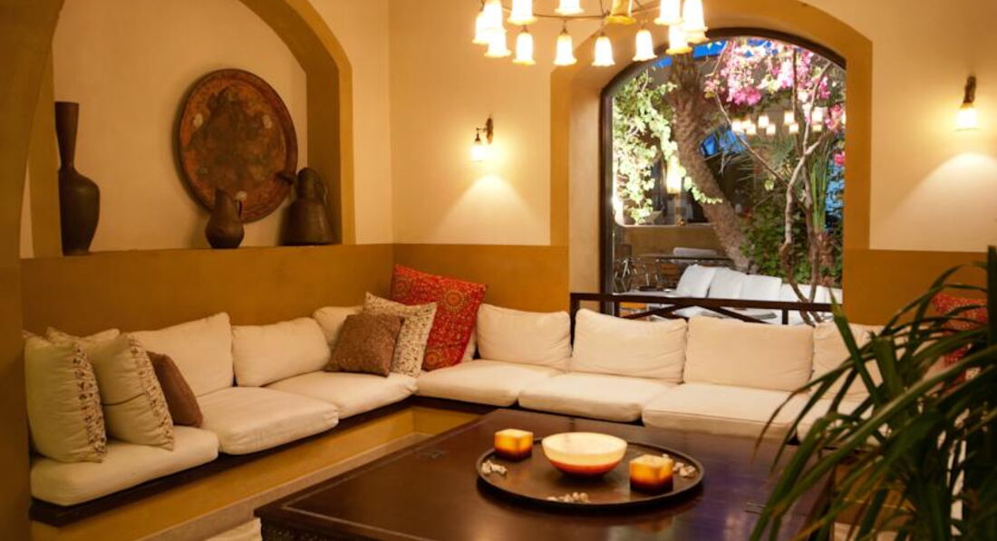 Заселили нас сразу же. Интерьер отеля уютный, можно сказать аутентичный - ощущение, что живешь в большом арабском доме. Качественная мебель, светильники, предметы интерьера - всё подтверждает название "бутик-отель".