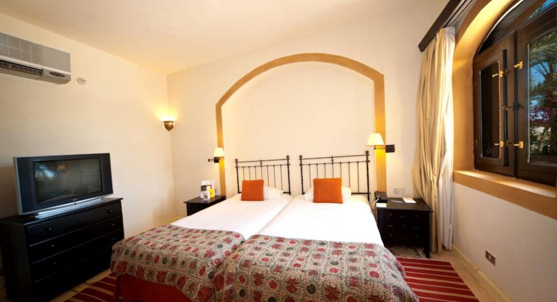 б/п сейф, телевизор (2 русских канала), индивидуальный кондиционер (очень мощный), водонагреватель, душ, фен, гель для душа и рук. Один ресторан, бар в здании, бар у бассейна, уютный дворик. Вечерняя анимация - танец живота,арабские песни. В 5-10 минутах - центр города, кафе, рестораны, банки, магазины, базарчик, аптека и т.д. Молодежи здесь будет скучно, отель подойдет для романтического отдыха вдвоем и для тех, кто планирует основное время проводить на пляже. В отеле есть номера для молодоженов с огромной кроватью и красивым убранством. Номера лучше брать подальше от главного корпуса, будет тише и спокойнее.