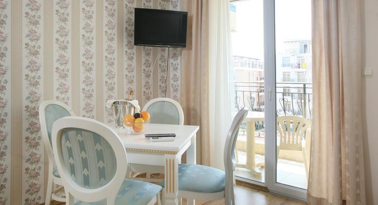 Отдыхали в начале июля 2016 г. с семьей (2 взрослых + 2 ребенка 5 лет и 2 года) и с друзьями (2 взрослых+ребенок 2 года) в комплексе Dawn Park Apartments. Брали только номера без питания, тур оператор - Библиоглобус, встречающая сторона - Бон тур. Размещение очень понравилось - заказывали апартаменты с 1 спальней, но предоставили с 2-мя, в номер есть все необходимое, небольшая полностью оборудованная кухня с диванчиком двухместным, 2 санузла. Бассейн чистый с детским отделением, лежаков и матрасов хватало всем желающим. За все время купания в бассейне дети не поймали даже насморк(как это было в других странах), про кишечные инфекции тоже не слышали. Персонал доброжелательный, хорошо относится к деткам. Есть игровая комната с батутом и машинками для малышей, правда, платная - 5 лев в час, работает с 16.00 до 21.00. Уборка в номерах - каждый день, заключается в мытье пола. За неделю постельное белье не сменили ни разу, но в этом и не было необходимости. Напротив отеля находится небольшой супермаркет, цены в нем на 15-20% выше, чем в крупных сетевых (Младость и ММ Маркет), но вполне на уровне всех остальных магазинов в городе, работает он 24 часа, воду и фрукты тоже можно купить в лотках напротив отеля.