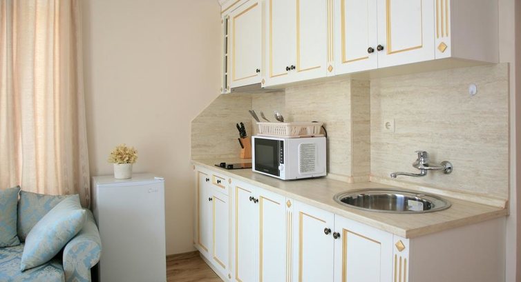 Отель больше подойдет для семей с детьми, их там большинство. Новенький, чистый, хорошие интерьеры, в отдалении от шума набережной, но в то же время до моря, остановок, крупного маркета и аквапарка мы доходили минут за 7.Достался номер с отдельной спальней(т.е. Фактически 2-комнатный), в номере мини кухня, микроволновка, стиральная машинка -очень удобно (не во всех номерах). Матрасы нормальные, а вот подушки каменные, долго привыкала, но это кто как любит. Слышимость сильная, нам повезло рядом никто не шумел, только звук открытых кранов в соседних номерах иногда мешал. В отеле большой чистый бассейн с детской зоной и джакузи, лежаки с матрасами, свободные были всегда, спа (цены высоковаты), детская комната с аниматором за 5 лев/час, было видно,, что детям нравилось, ресторанчик(довольно вкусно, средний счёт на 3х 30-40 лев, супы 3 лева, салаты 5-7 лев), лобби бар. Рядом через отель, который тоже имеет отношение к Dawn park, есть платный теннисный корт и футбольное поле, мини парк с детской игровой площадкой. Персонал весь доброжелательный. За 12 дней белье поменяли 2 раза. Утюг приносили по просьбе, гладильная доска есть в номере. Шампунь и мыло приходилось просить, проще купить. Вай фай по 3 лева в сутки, который берет только в лобби и то слабенько. Подключать его надо до вечера так как вечером ресепшн не работает. В целом все понравилось, отдыхом довольны!