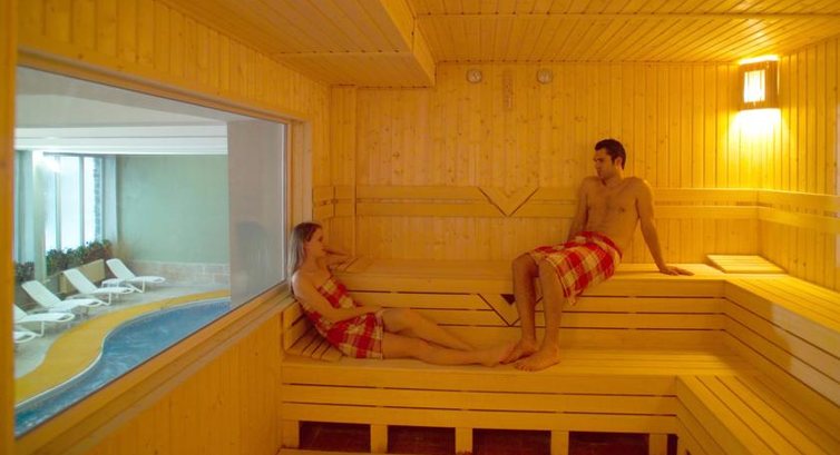 В отеле есть небошой бассейн, глубина 130., 2 сауны, хамам. После сауны народ с удовольствием выпрыгивал в окно обтираться снегом :-)