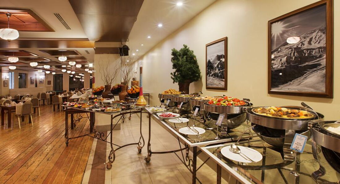 Територія та послуги: • Ресторани A la carte: 1 • Бари: 2 • Конференц-зал: 2 (на 80 та 220 осіб) • Кабінет лікаря • Пральня • Хімчистка • Паркування • Фотосалон Розваги та спорт: • Тренажерний зал • Настільний теніс • Більярд • Настільні ігри (нарди) • Курси катання на лижах, прокат спорядження: платно • Сауна, відкритий басейн Для дітей: • Няня (платно) Живлення: • BB • FB+ • HB