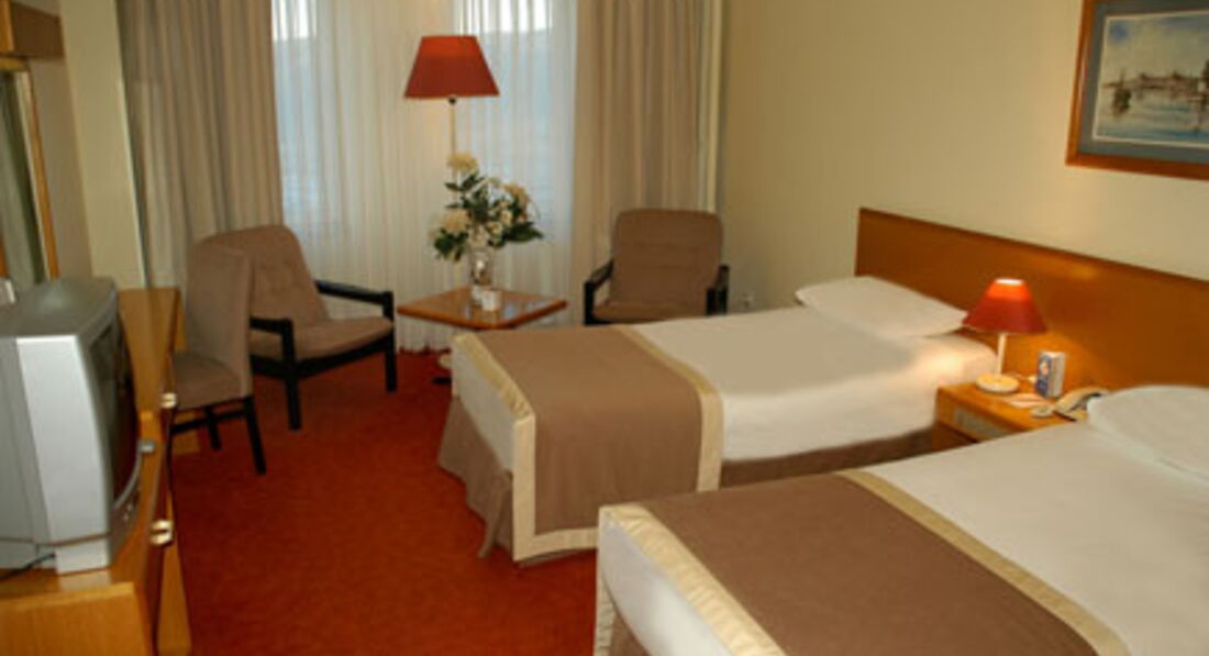 У номері: • ванна • фен • центральний кондиціонер • телевізор • телефон • міні-бар • сейф (в reception – безкоштовно) • килимове покриття • room service • прибирання номера та зміна білизни – щодня