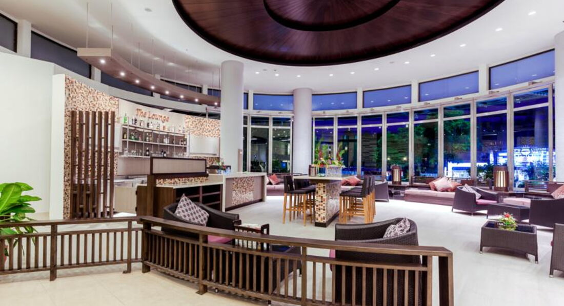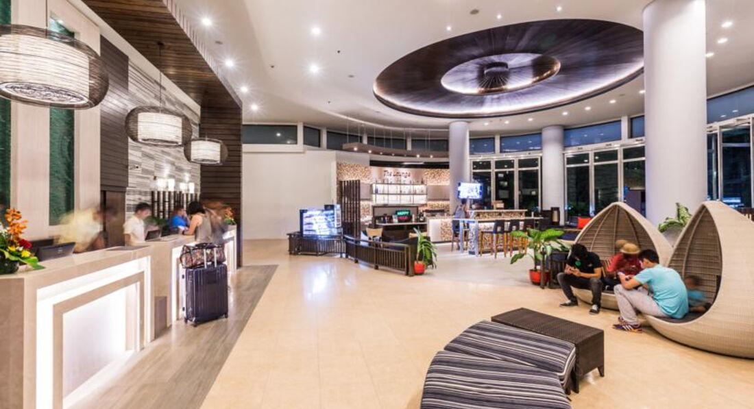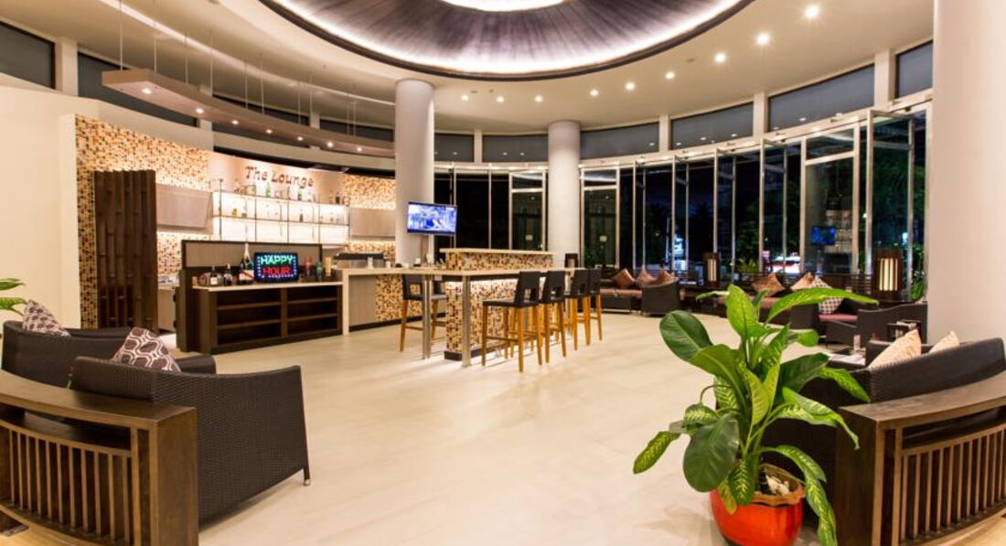 Отель хоть и четверка, но номерной фонд на твердую пятерку. Отель сравнительно новый и этим все сказано, номер аккуратный, мебель свежая, кровать огромная(можно ночью друг друга не найти), убранство приятное, особенно можно выделить панорамную, стеклянную стену между комнатой и ванной, шторка на случай, если пришли гости, имеется. В номере есть всякие нужные мелочи, типа зонтика и гладильной доски с утюгом. Хотелось бы здесь отметить, что номер был с видом на бассейн, тогда утром просыпаешься под успокаивающий звук журчащей воды, так как на другую сторону окна могут выходить на дорогу, где с вечера очень было шумно и где-то до 12 ночи играла громко живая музыка или на вид стен отелей, прилегающих почти вплотную. Номер убирали хорошо, не без чаевых конечно, оставляя комплименты в виде белоснежных слоников из полотенец. Бассейн средний по размеру, но очень уютный, особенно вечером, когда около него выставляли столики для тематического ужина, загоралась подсветка и приятная успокаивающая музыка! ММмм, рамантика... Однако бассейн на крыше не имеет особой ценности, он очень мал, зато смотровая площадка там же с видом на вечерний город, где можно выпить любимого коктельчика, очень радует глаз! Еда на завтрак свежая, достаточно разнообразная, поэтому пять. На обед тоже что-нибудь готовят, можно не отходя от бассейна пообедать за дополнительную плату. Где-то 200 руб. стоила паста, огромная тарелка, сам откладываешь кол-во морепродуктов или мяса, я одна не смогла ее доесть. А вот ужины это отдельная песня, мы попали на Китайский Новый год, 800 руб. на чел.(все вкусное, разнообразное, экзотическое, это я про китайские новогодние закуски), день Святого Валентина 3200 на двоих ( там блюда картинки, ресторанное оформление, фотосьемка, еще и "серенаду" под гитару нам спели!!!!), Паста 400 на чел, Гриль 800 на чел. Конечно, там можно через дорогу в любой кафешки в два раза дешевле покушать, но атмосфера, сервировка и внимательное отношение к гостям всегда подкупает. Еще хочу отметить наличие спа-центра в отеле, там тайский традиционный массаж 400 руб. стоит за час, считаю не сильно дорого, зато не надо никуда идти, да плюс условия там приятные. Тренажерный зал тоже имеется, я пару раз ходила, малый теннис и есть групповые занятия йогой, аэробикой, еще чем-то, правда до них я не дошла. Единственный, но неоспоримый минус, это сравнительная отдаленность от моря, ну скажем прогулочным шагом мин 10-15, для молодых не проблема вовсе, но вот с детьми по жаре тяжеловато будет, это на мой взгляд. Сервис, весь обслуживающий персонал очень приветлив и услужлив ,только приятные воспоминания. Место расположения отеля от центра и самой тусовки мин 30 пешком, на такси 5 минут, но в центре на любителя, там очень шумно, а в этой части значительно тише и нам это подходило больше. Мы ездили двумя семейными парами, для нас это было очень подходящее место для отдыха!