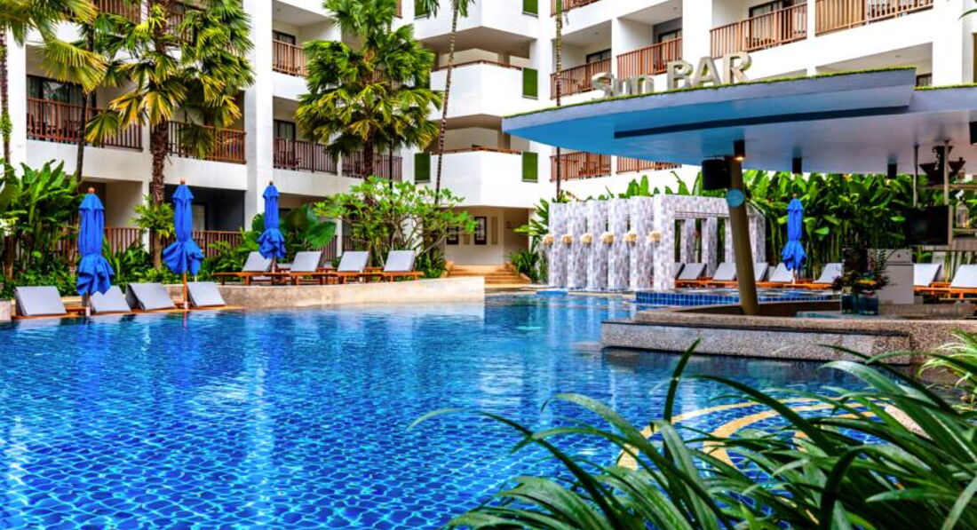 Отличный отель категории 4* на Патонге, рядом кафе и магазине, в пешей доступности самый крупный торговый центр. Территория небольшая (что типично для всех отелей на Патонге). Пляж муниципальный, около 800 метров, стоимость шезлонгов около 100 батт. Завтраки отличные, большой выбор блюд и все очень вкусно. Есть детский клуб. Рекомендую отель для активного отдыха.