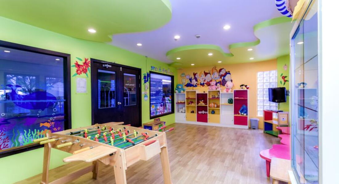 Есть детская комната возле бассейна, сын там играл немного.