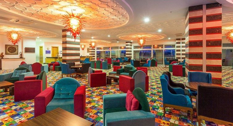 Територія та послуги: • відкритий басейн, 940 кв. • релакс басейн, 720 кв. • басейн з гірками, 120 кв.м, 5 гір • основний ресторан – відкрита секція на 500 чол. та крита секція на 300 чол. • 3 бари • тенісний корт (тверде покриття) • футбольне поле (шатл до поля безкоштовно) • кінотеатр • інтернет-кафе (безкоштовно) • міні-маркет • обмін валюти • Wi-Fi (безкоштовно, у лобі) • оренда автомобіля • медичні послуги • пральня, хімчистка • послуги фотографа Розваги та спорт: • анімація російською мовою • турецька ніч, жива музика (1 раз на тиждень) • турецька лазня, сауна, парна • джакузі • фітнес центр • тенісний корт (вдень) • більярд • дартс • настільний теніс • баскетбол • Пляжний волейбол • міні-гольф, міні-футбол • аеробіка • СПА-центр платно • масаж платно • всі водні види спорту платно Для дітей: • ліжечко, за запитом • дитяча анімація російською мовою • міні-диско • міні-клуб (4-12 років) • відкритий дитячий басейн, 74 кв.м, 2 гірки • дитячий майданчик, ігрова кімната • у ресторані надаються дитячі стільці • коляски (безкоштовно) Живлення: • AI – все включено У концепцію входить: сніданок, обід та вечеря – шведський стіл, пізній сніданок, солодощі та закуски у певний час, місцеві алкогольні та безалкогольні напої (10.00 – 24.00). Імпортні напої, напої, що не входять до концепції, свіжі соки, морозиво, обслуговування в номер (10.00-22.00) - платно. Пляж: Власний піщаний пляж знаходиться за 400 м від готелю, через дорогу, по підземному переходу. Сервісу до пляжу немає. Протяжність пляжу становить 100 м. Шезлонги, парасольки, матраци, пляжні рушники – безкоштовно. Захід у море – пісок. Душ, рятувальник, кабіна для перевдягання, бар на пляжі (тільки напої). До оплати приймаються кредитні картки: Visa, MasterCard.