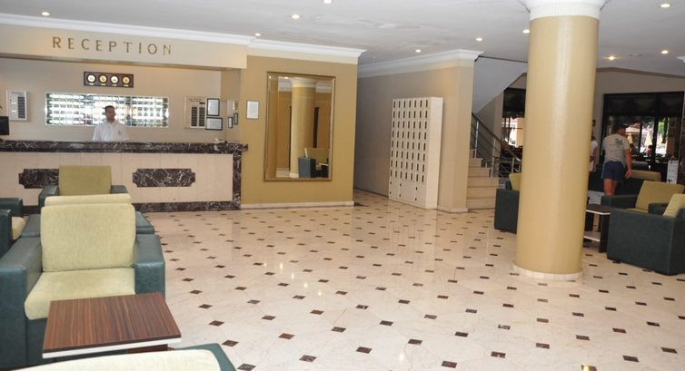 Отдыхали с женой в конце июня начало июля 2014 года.Прибыли в отель достаточно поздно в 23.00 - долгая дорога от аэропорта,фактически 3 часа. Брали путевку от тез тура. По дороге завозили в "прикормленный" магазин с дикими ценами.Продавец из магазина попытался вытянуть из кармана кошелек,не удалось прикинулся "дурачком".Обнаглевший персонал тез тура продавал в салоне автобуса воду и доставал требованиями отблагодарить его и водителя "баксами" за непомерный труд.Разместили сразу, накормили сух.пайком.Стандартный номер для всех отелей такого типа.Отель находится на 1 линии,через переход до пляжа 100 метров.Номер на 3 этаже с видом на бассейн. Ресторан рядом с бассейном,бар только у бассейна.Очень хорошее питание,не хуже,а может и лучше чем в "четверках", много сезонных фруктов,турецкие сладости.Хороший бассейн.Уборка номеров средняя.Есть бесплатная сауна с сильным запахом пластмассы(отбивает желание ее посещать).Платный массаж(мы так и не рискнули его посетить)Анимация была вечером,за две недели 2 раза.Каждый вечер дискотека у бара.Пляж соответствует пляжам России. В целом довольно скучный отель, зато вполне приемлем по ценам.Спиртные напитки в баре - такая же бодяга как на Родине.Уезжали опять слишком рано - в 4 часа утра,много времени потеряли на дорогу до Мухотлара и аэропорта.Отъезд из отеля без всяких проблем.