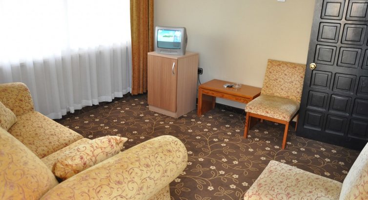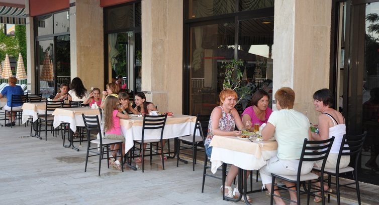 всем привет.отдыхали в отеле в середине июня 2015 года втроем-2 взр. и дочь 6 лет.разместились в номере в 12 часов-до 2 ждать не заставили.номер небольшой но чистый .выходил на улицу(довольно тихую).питание на полную 4-мясо ИЛИ рыба каждый день.из фруктов арбуз-яблоки.остальное за куруши на рынке-цены никакие.все напитки(и алкагольные)местные водка-ракия не пробовал-вино бутылочное хорошее.заход в море не очень(плоская плита)но можно поискать у соседей где песок,,мы так купались.лежаки зонты матрацы бесплатно.территория довольно большая..есть садик и детская площадка.хорошая взрослая анимация и детская-всё на русском.да и отдыхающие все наши.персонал яз. неплохо понимает.есть сауна и 1 сеанс массажа бесплатно.тренажёрка.даже не знаем почему 3 а не 4.единственным крупным минусом был скандал с отельным гидом от АННЕКС ТУРА.наглый человек навязывал свои экскурсии по запредельным ценам.спрятал свой бэйджик(имя) коллеги его морды в тряпочки-и молчок.ПОКУПАЙТЕ ЭКСКУРСИИ НА УЛИЦЕ-хоть у кудрата хоть у татьяны-да они там на каждом шагу.всё СТРАХУЮТ.отельные гиды жалкие ПОПРОШАЙКИ.да и трусливые притом.а так всё пучком-отель рекомендую.
