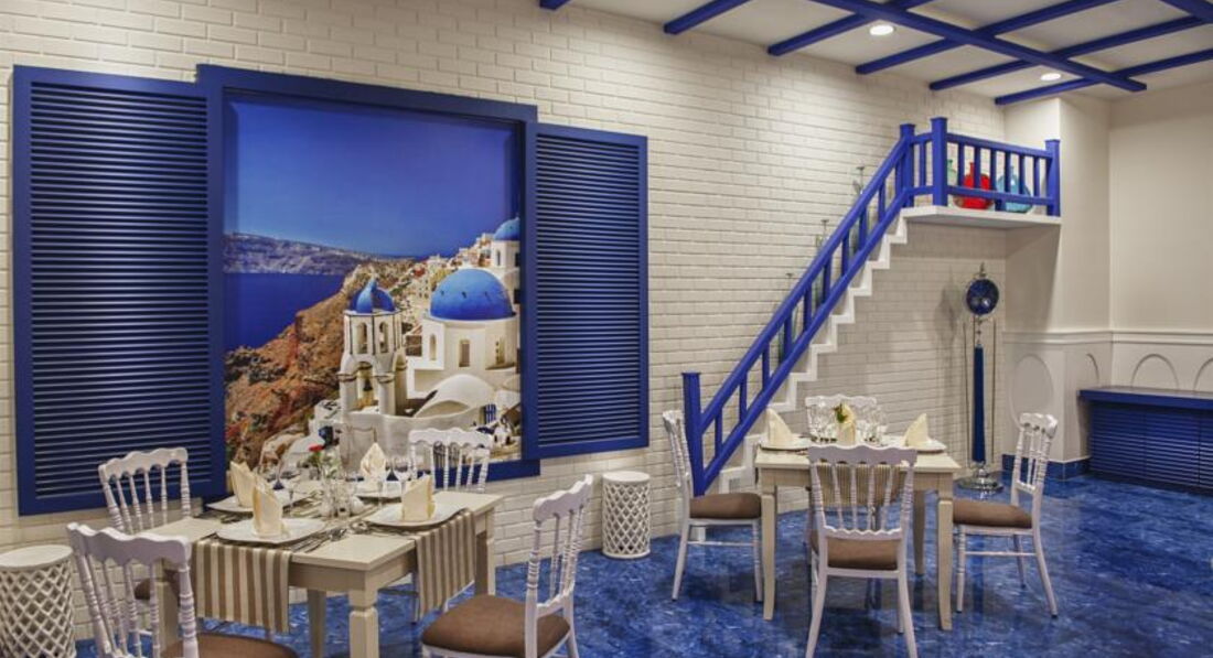•ресторани a la carte: 6 (італійський, ліванський, мексиканський, грецький, французький, південно-східний – за попереднім записом, за тиждень проживання відвідування кожного з ресторанів 1 раз – безкоштовно)