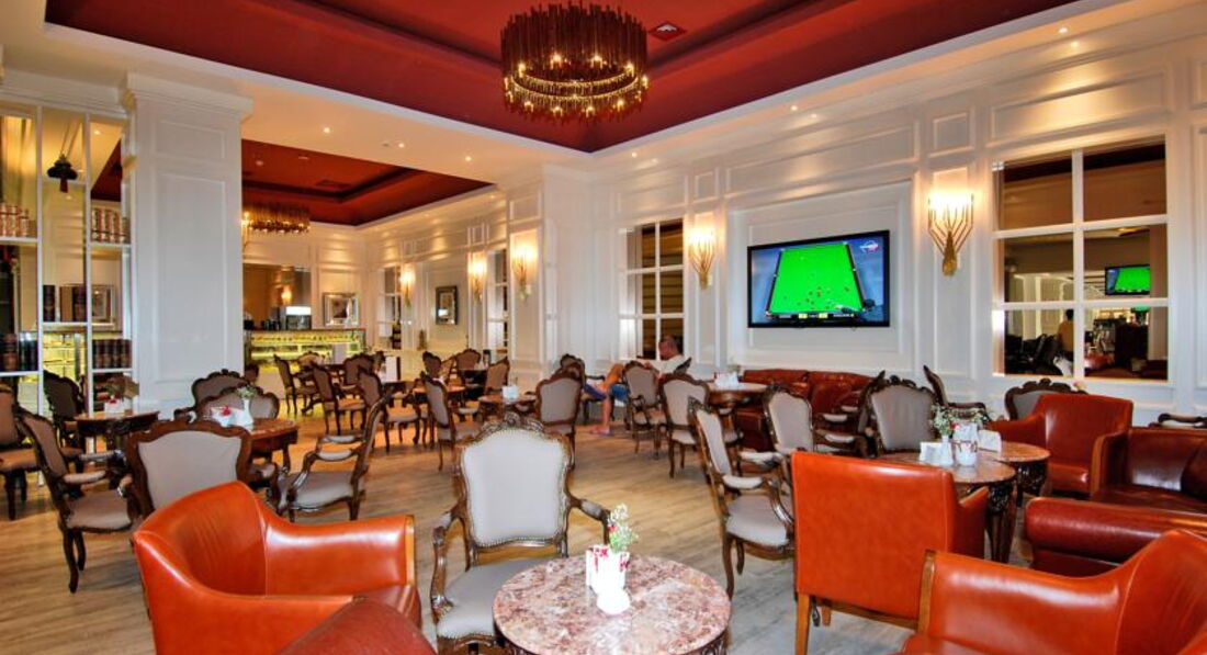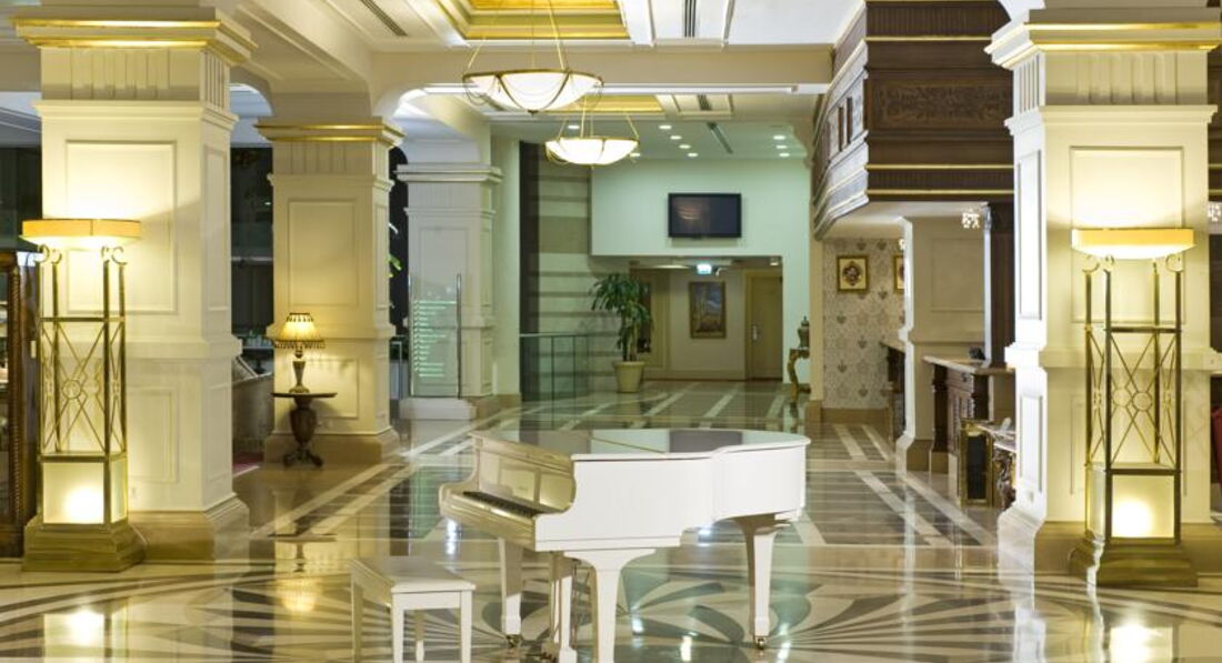 3.Обстановка/ Холл+ Лобби + 2 основных бара и помещения общего пользования в главном здании/ Минус: