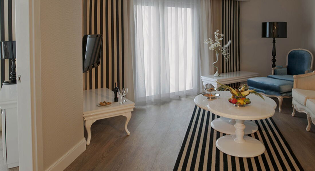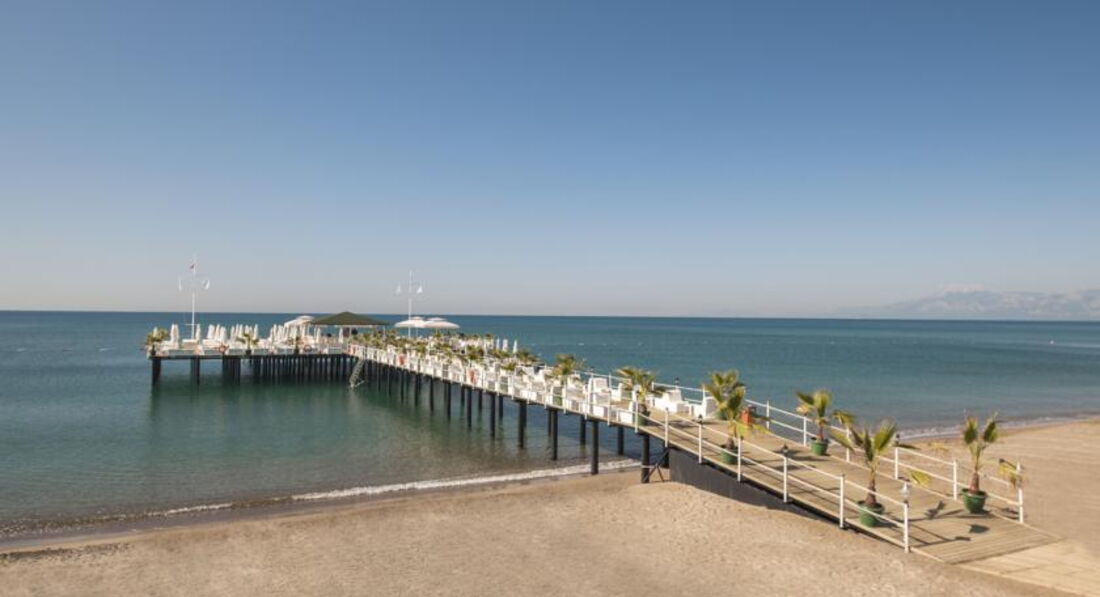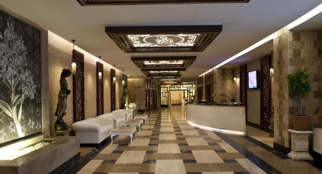 Отель на неделю стал нашим домом..вернее не домом, а нашим ДВОРЦОМ !) Насколько он красив фотографиями передать невозможно: невероятные дизайнерские люстры, зеркала в роскошных обрамлениях, картины из мозаики на стенах, подсветки, великолепные мягкие зоны с шикарными диванами, просторные номера- классно всё- изнутри и снаружи..и главное- везде очень чисто! Всё очень удобно и логично расположено, никаких "спрятанных услуг для галочки" - всё для НАС! ПИТАНИЕ бесконечно изобильное, очень качественное и разнообразное..одним словом здесь есть ВСЁ: креветки, мидии, сёмга во всех вариантах исполнения, ягнятина, телятина, супы не менее 3х видов, каши не менее 5ти видов, свежевыжитые соки 5 видов в удобных кувшинах, которые можно взять себе на стол и налить сока столько, сколько вы готовы выпить, молочные коктейли, фрукты на любой вкус, мороженое 5-7 сортов, вкуснейший кофе около 8 вариантов, шоколад-бар, где вы сами можете приготовить шоколад с любым наполнителем и даже шоколадный фонтан!..всё это в постоянной доступности...алкоголь качественный, импортный, подаётся красиво в правильной посуде (никаких пластиковых стаканчиков!!!). Вежливость, доброжелательность и улыбчивость персонала - бесспорно на высоте! Все говорят по русски и рады исполнить любое ваше пожелание (в баре не было фруктов, они там в принципе не предусмотрены, но нам в 24.00 на Старый Новый год захотелось шампанского с черешней и мандаринами - и они у нас были! уже через 3-5 минут! при чём официант очень извинялся, что мы долго ждали!)..короче чаевые хотелось раздавать всем и каждому.. ТЕРРИТОРИЯ достаточно большая, всё удобно, чисто , красиво- бассейны (один с подогревом), аквапарк, парк атракционов, теннисный корт, песчаный пляж с пирсом, везде бары, снеки, вафли, гёзлеме, мороженое, есть двухспальные шезлонги...В номере чайник (чай, кофе, сливки), минибар (кола, фанта, пиво, вода, печенья, шоколад), халаты, тапки, зубные щётки и паста, хороший кондиционер для волос.