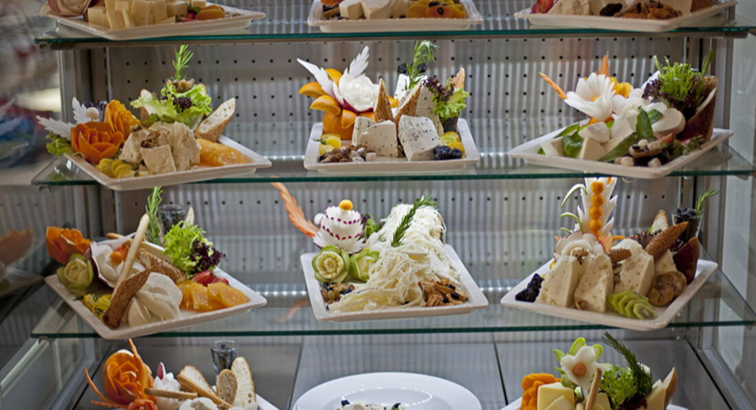 Никаких рыбных столов нет( есть рыбный закуток за стеклом из нарезок копченого филе, фарша из тунца и ужасно маринованных анчоусов ), сырный есть.