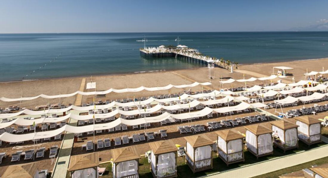 Показалось, что пляж плохо убирают, ибо там везде окурки, детский бассейн с одной стороны порадовал 35 см., но с другой стороны там при входе в воде всегда куча песка, за его территорией плохо смотрят и там к вечеру куча мусора: стаканы, бутылки от воды.... и все это попадает в бассейн.