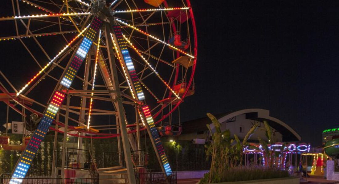 Территория компактная и очень продуманная. Есть и тихая зона и активная с бассейнами, и для семей с детьми до 10 лет с небольшими горками, и отделный бассейн для самых маленьких, аквапарк с большими горками, лунопарк с 19:30 до 21:30, мини клуб с игрушками, батутами, детей там было всегда много.