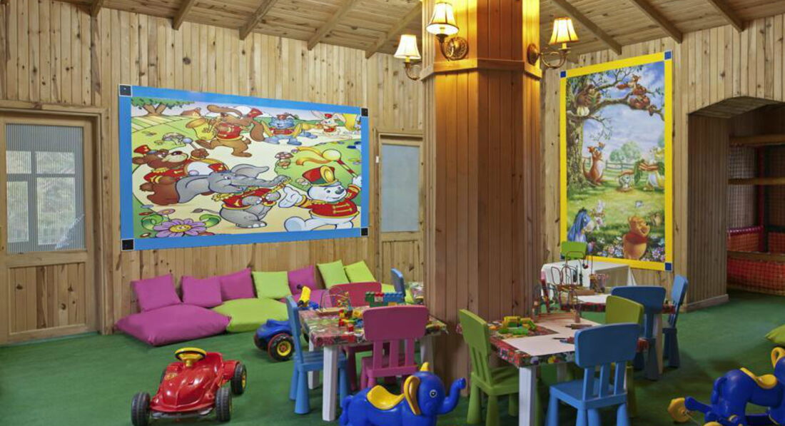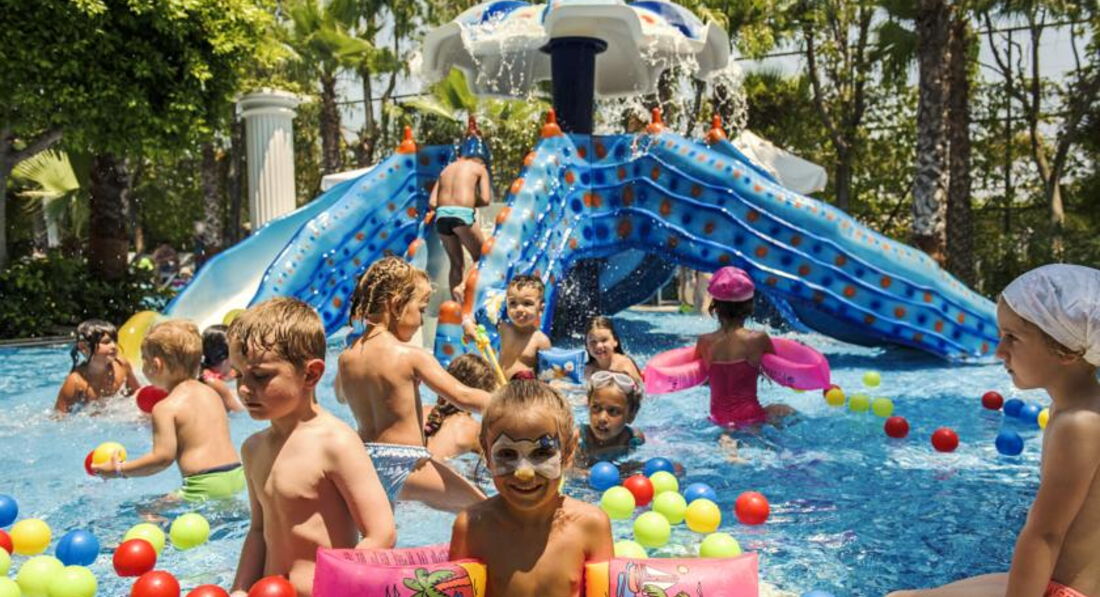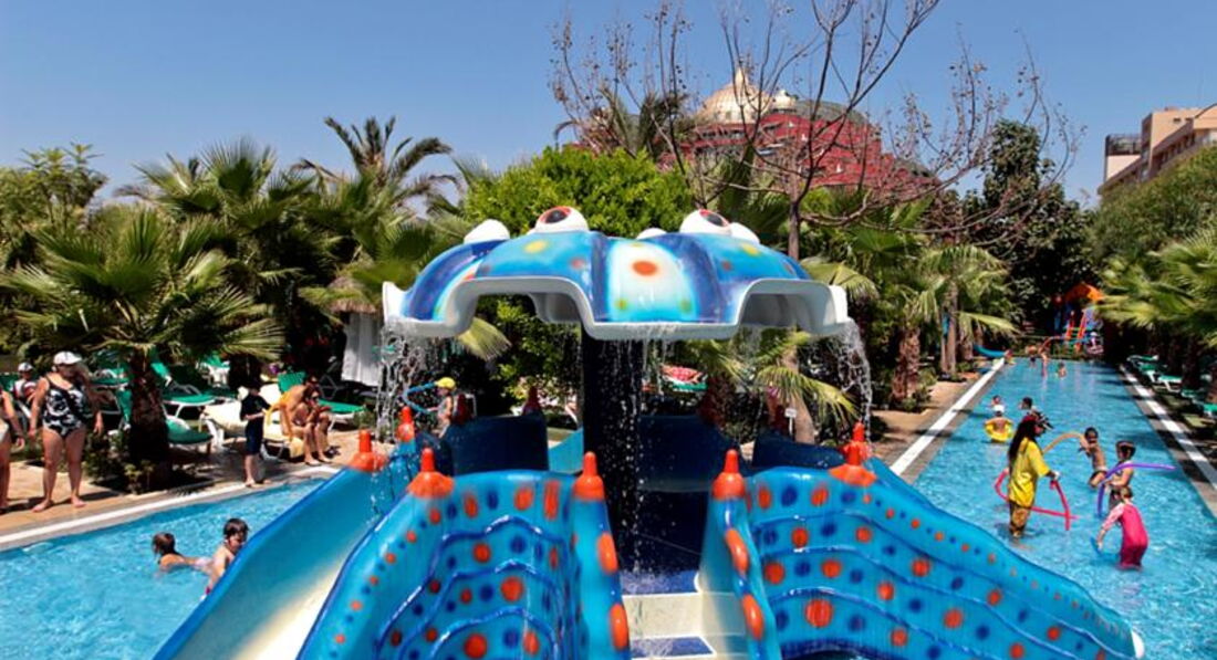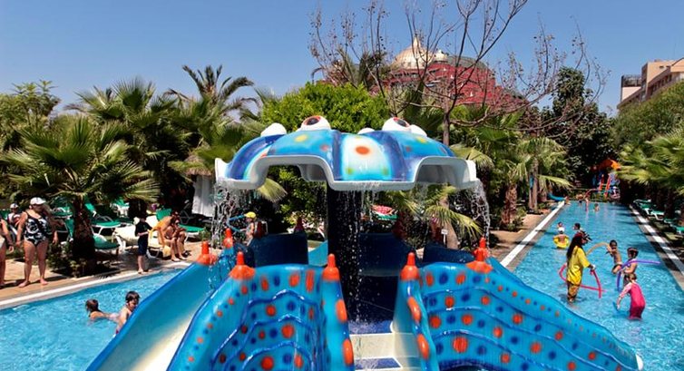 Отдыхали семьей с детками (9лет и грудничок 9 месяцев). Дорога от аэропорта заняла минут 10. Отель очень хорош. Территория компактная и немаленькая. С коляской есть где погулять. Также бассейн для малышей в тени, активный бассейн (глубина 1.40) и Релакс бассейн (детей до 14 не пускают). Питание : есть абсолютно все: рыба красная на завтрак,обед, ужин, креветки, омары, суши , мясо, птица, рыба, и много много всего. Для малышей есть йогурты , баночное питание (фруктовое и овощное), мы брали блендер и взбивали отварные овощи и мясо. Накормить детей проблем нет. Фрукты в изобилии : черешня, арбузы, дыни, персики, нектарин, виноград, бананы, яблоки. Много писать не буду : фото добавлю. Также работает луна-парк с 18:30 до 21:30 карусели, паровозик, картинг , качельки. Можно посещать соседние «дельфины» в определенные Часы , но в жару особо не хотелось идти. Рядом есть магазины и супермаркеты, вечереком можно прогуляться по улице. Единственное ,что омрачило отдых -это кража из номера денег и очков с дорогой оправой. Всегда убирали все с сейф, но накануне перед вылетом все вытащили и горничная, не боясь , все прихватизировала(. В целом все было на высоте. В отеле преобладают в основном немцы. Анимация для деток, миниклуб . Для детей здесь просто рай.