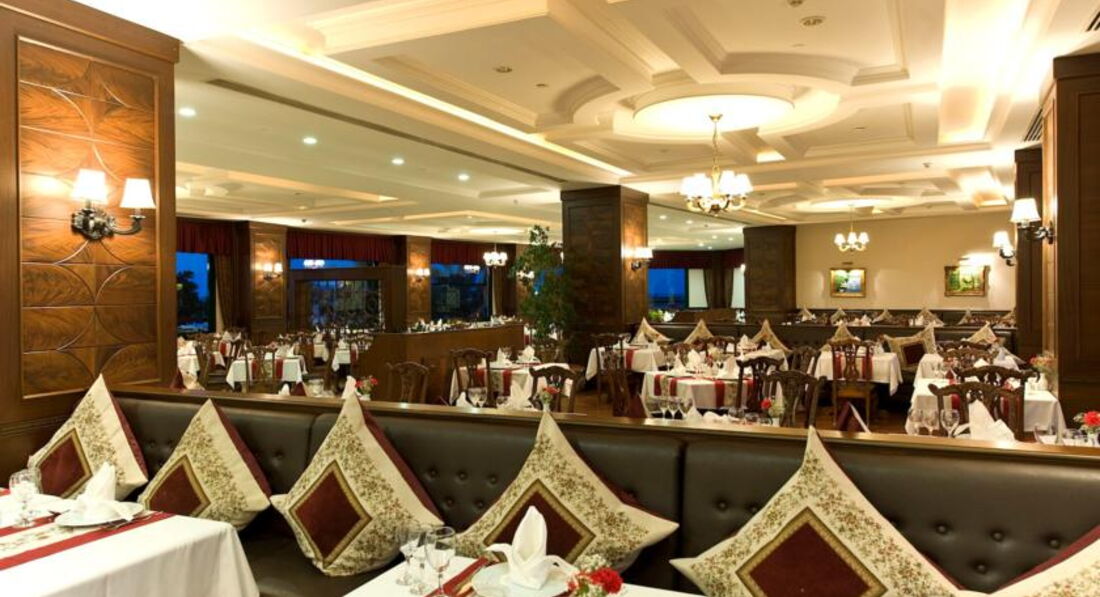 Бари та ресторани: головний ресторан розрахований на 1110 осіб (критий, з кондиціонером, літня тераса, дитяче меню, дієтичне меню, дитячі стільці), лобі-бар (24 години), бар біля басейну (10:00-24:00), бар на пляжі (10:00-18:00), диско-бар (23:00-02:00), Cigar-бар (20:00-24:00), вітамін-бар (10:00-18:00) ) та ін.