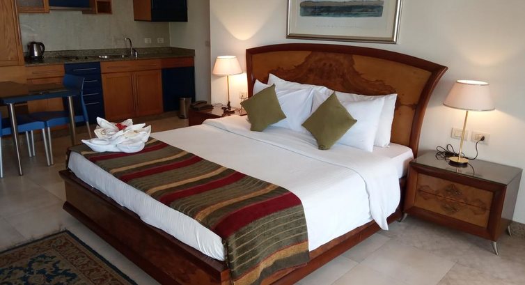ПИТАНИЕ: в Египте не первый раз есть с чем сравнить ну что сказать -да, питание относительно однотипно НО салаты видов 5 ,гарнир- рис пюре паста картофель фри это каждый день,мясо рыба... завтраки круасаны блинчики тосты хлопья выпечка фрукты ассортимент не велик но регулярно...вообщем я не знаю кто недоволен но голодным тяжело остаться ,а кому не понравилось так ребята в 5 звёзд :-)А относительно официантов и их загружености так давайте о себе знать,а не ждите пока вас царей обслужать улыбка поднятая рука и ваша кола пиво вино уже несутся к вам:-)!И не забывайте это не наш персонал они медлительны это у них в крови!Замечено и принято как факт:-)!МИНУС: пляж отеля находится в 10 мин езды и автобусы ходят - утром 9:00,10:00 и забирают 13.30,15:30 - не очень удобно.но за 10 фунтов(1$-5.8фунтов) -такси или 1 фунт местная маршрутка- так что есть из чего выбрать.Лежаков хватало,на пляже куллер с водой но лучше берите с собой покупайте в маркете за 2.5 фунтов 1.5л!Напрокат есть маски ласты тапки но при желании можно купить в старом городе маски-10-15$ спец тапки для кораллов 3$!Торгуйтесь:-)!!!