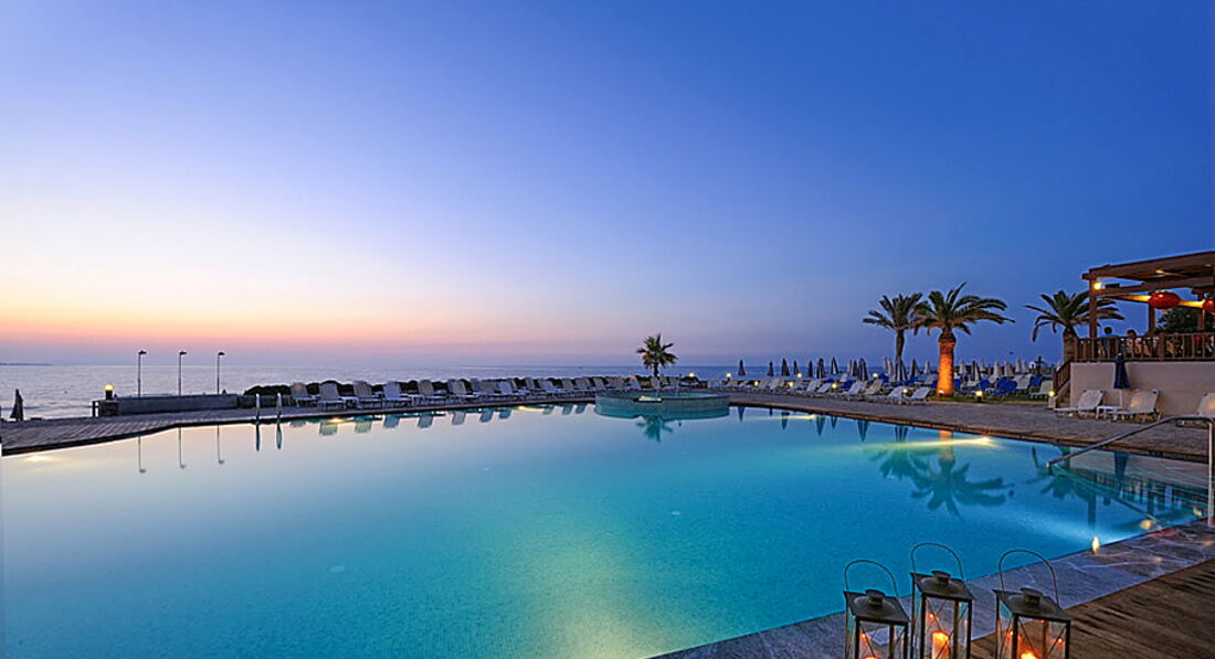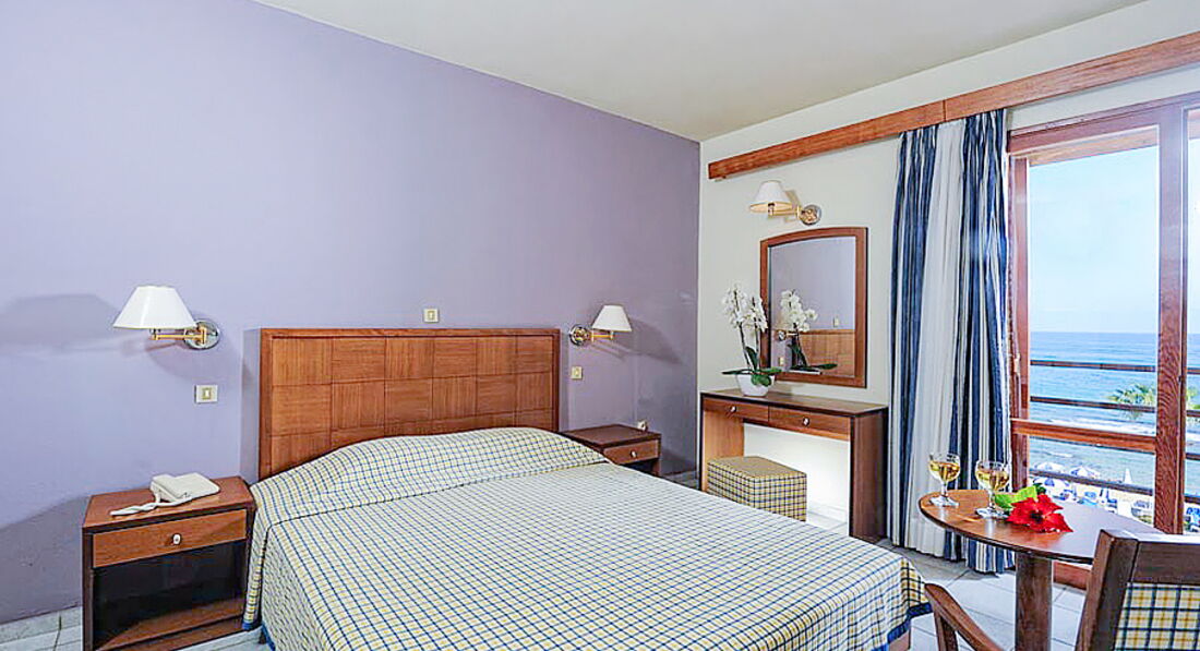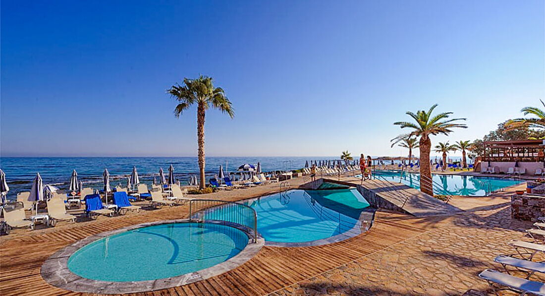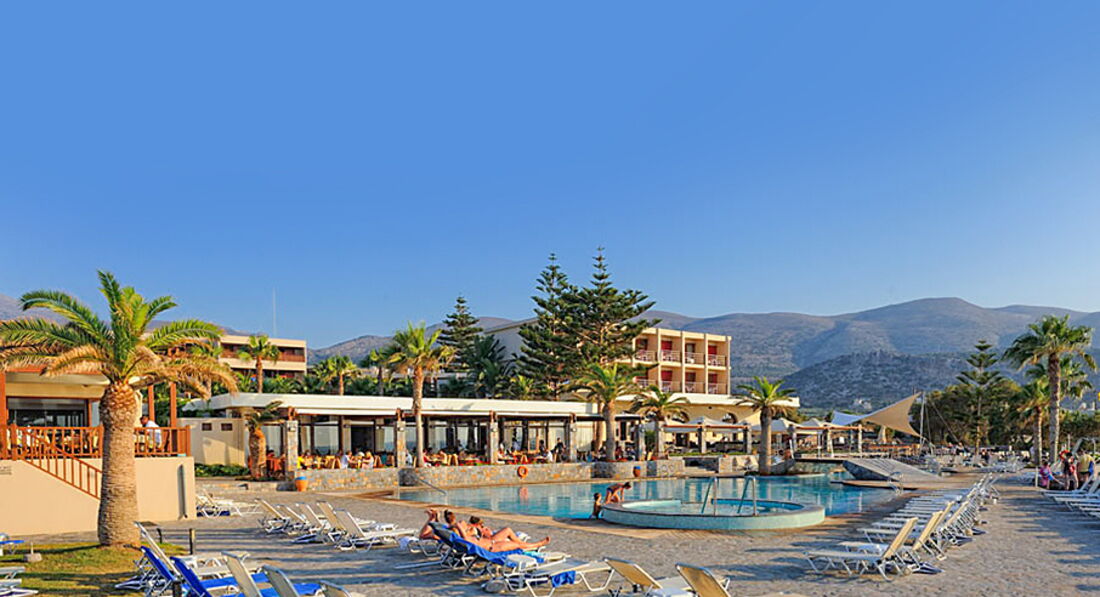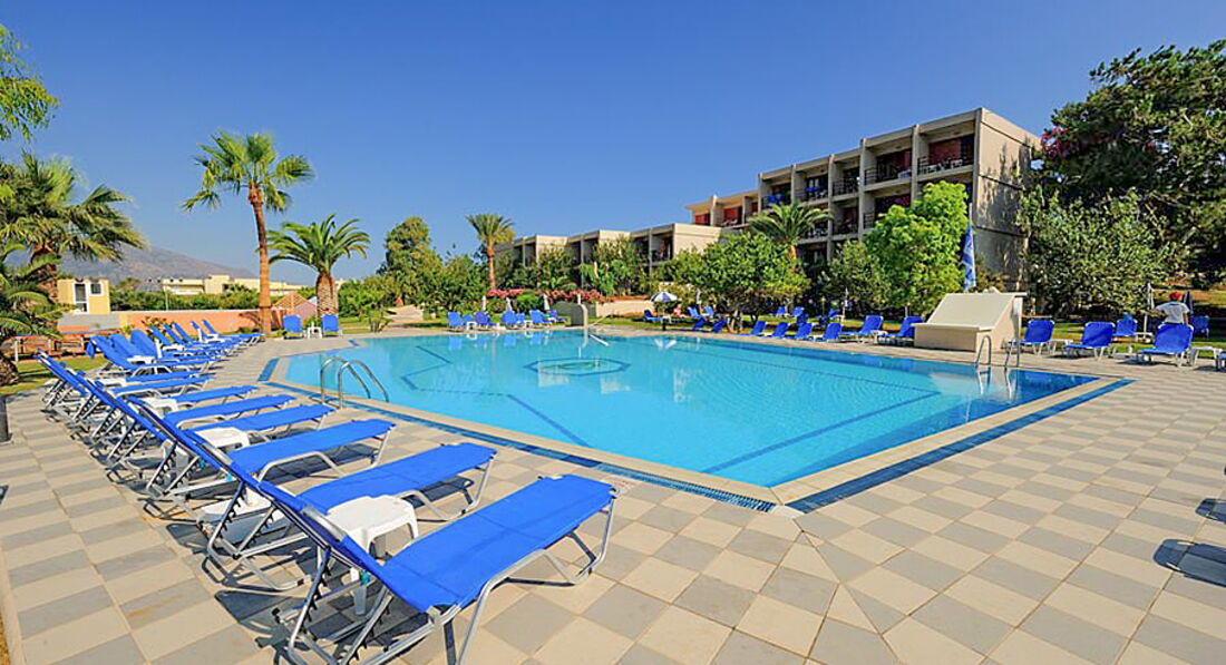 Отель отличный. Территория ухоженная, много зелени. Персонал приятный. Тур купили у т/о ТПГ, этот отель как раз в тот момент был у них в фаворитах - многие бронировали. МЫ сначала внимательно изучили отзывы и информацию по нему и лишь после того, как не обнаружили особо ничего негативного, решились на отдых в этом месте. Рейс немного задержали, но как раз было время уточнить некоторые вопросы, которые мы не успели задать, а менеджер очень последовательно и чётко дала ответы на каждый, хоть уже и был конец рабочего дня. По прибытию на Крит мы прошли паспортный контроль довольно быстро, встретились с сопровождающим и отправились в отель. Ресепшн очень удобно расположен. Персонал быстро выполняет регистрацию, при этом мило улыбаясь и рассказывая о сервисе отеля. Номер получили, как и бронировали - с видом на море(боковым, на втором этаже). Номер достаточно чистый, много места, уютно обставлен и очень чистый(уборка номеров делалась ежедневно). Вся техника работала отлично. Мебель довольно неплохая. Ванная комната шикарная. Сантехника в хорошем состоянии. Полотенечка и постель нам не меняли три дня, мы уже пошлина ресепшн уточнить, но всё оперативно сменили и в дальнейшем делали почти ежедневно. Питание сбалансированное, вкусно готовят рыбу и мясо, овощи и фрукты спелые. В меню ежедневно присутствуют молочные продукты, несколько видов мяса, рыба, иногда морепродукты, гарниры, салаты, много овощей, сыры вкусные. Выпечка понравилась и сладости, особенно мороженное. В ресторане прекрасный персонал, все вкусно, приятная атмосфера и отличный сервис. Официанты добрые, внимательные. Ещё в отеле превосходная команда аниматоров - и деток отлично развлекают, и взрослым проводят занятия йогой, аква аэробикой, а также представления по вечерам. Спасибо Вам, ребята, что не давали скучать) Есть два бассейна, с пресной и морской водой(вообще практически у самого моря расположен), вода приятная, не сильно рохладная и чистая. Также, если прогуливаться по территории отеля, то всё аккуратно, чисто, красиво, дорожки, подстриженная травка, пальмы. За всем этим без устали следят садовники, которые целыми днями копошатся на клумбах и лужайках. Пляж - рукой подать, обустроенный, много лежаков. Заход в воду отличный, если пройти левее. Там чистый песок, нет камней. Вода, конечно была мутновата, штормило. Но, купались) и много загорали. Расположение отеля просто отличное - улочка довольно оживлённая, много магазинчиков, кафешек. Экскурсий мы не брали. Отелем довольны. Всё в нём так, как мы хотели. Благодарны менеджеру ТПГ Виктории за круглосуточную связь и помощь в решении проблем. Всё превосходно!