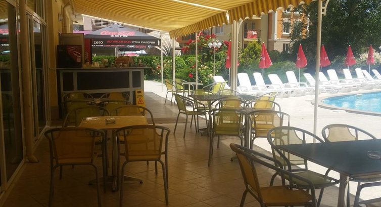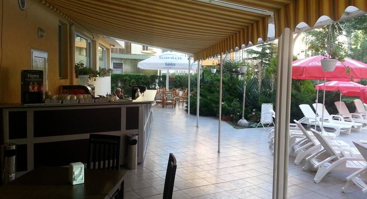 • ресторан розташований у холі готелю, має внутрішній зал та відкриту терасу на вулиці, пропонує страви сучасної болгарської та міжнародної кухні