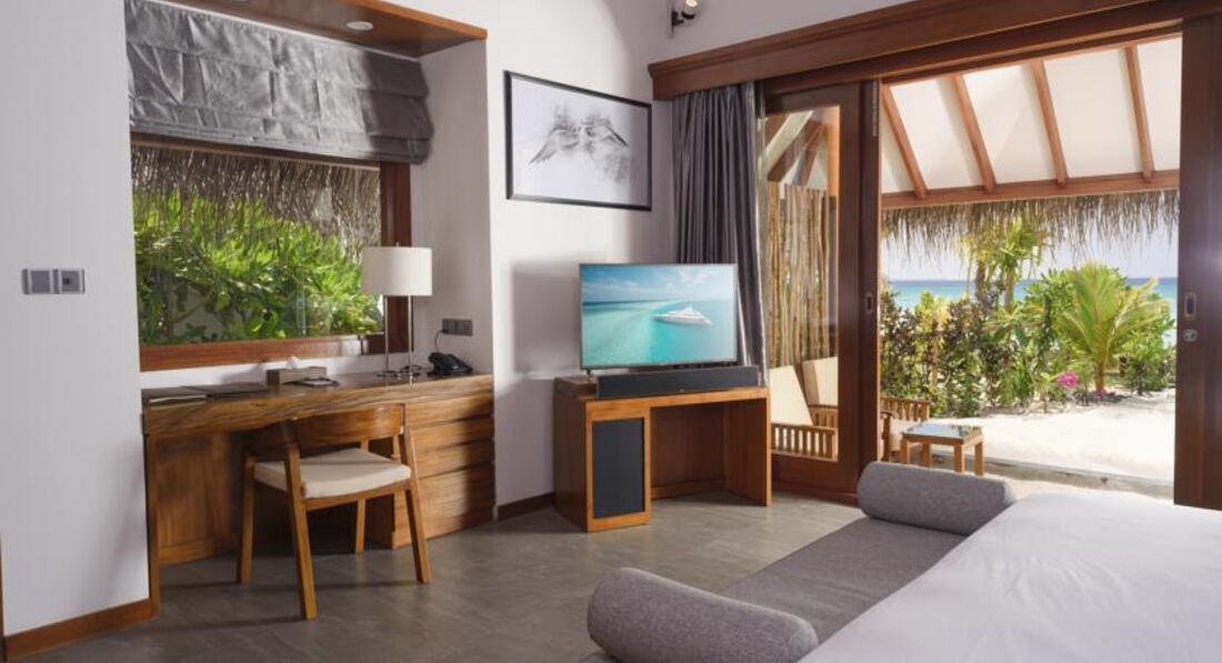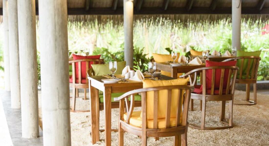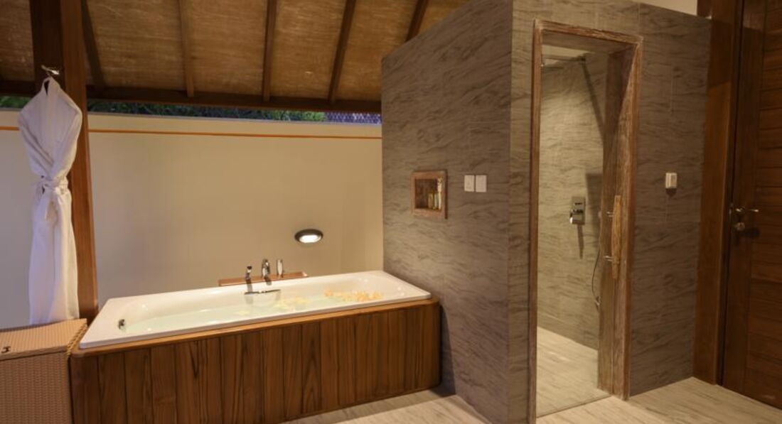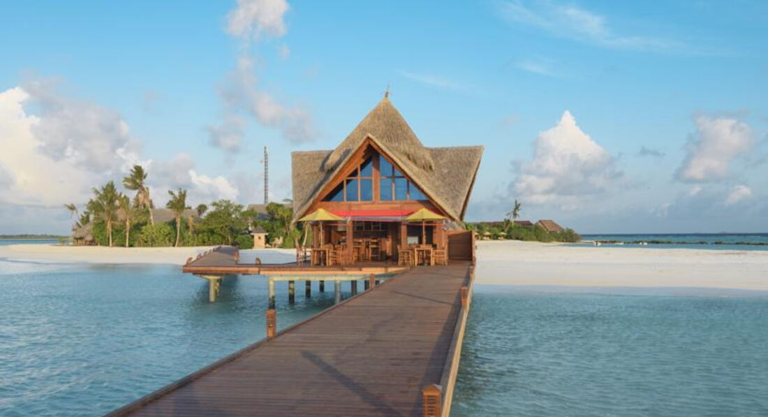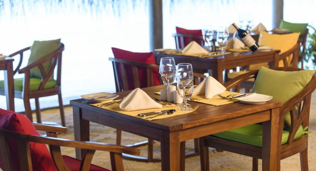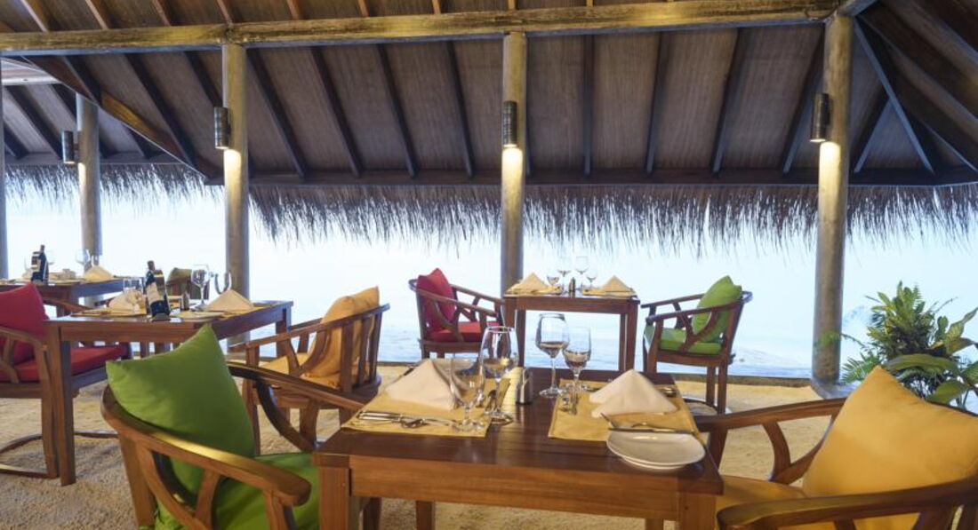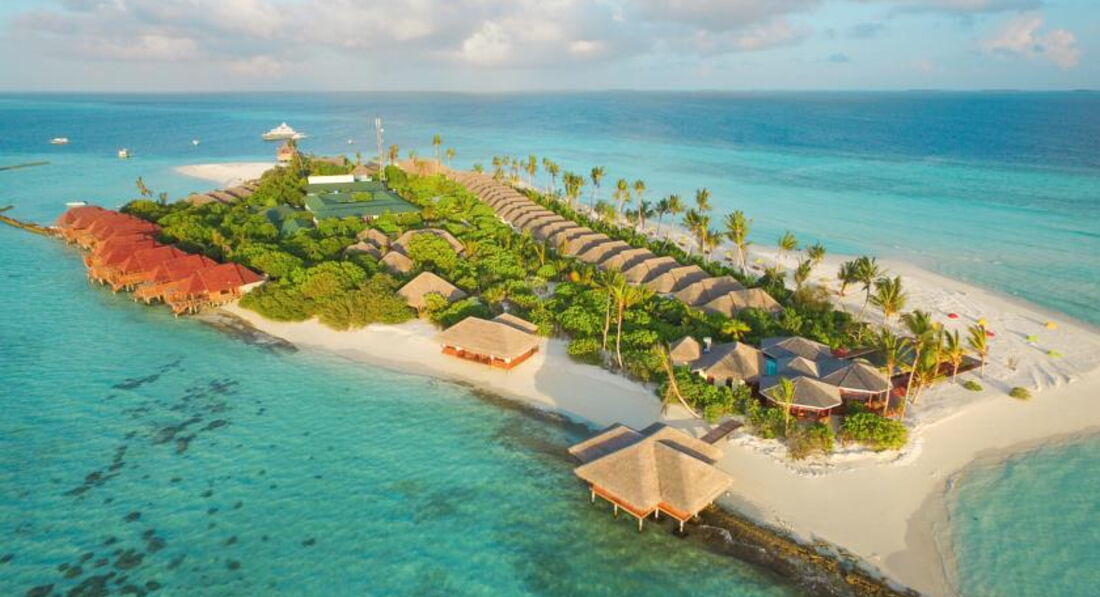 Отдыхали в октябре 2016г.Начну с того,что прилетев на Мале,представитель нашего отеля провёл нас на второй этаж в зону отдыха,где была возможность перекусить и комфортно дождаться своего самолёта до Дараванду. Летели 25 минут, и до своего атолла добирались 30 минут катером.Первое впечатление атолла расстроило нас.Мало растительности видно было из далека.Мы не первый раз на Мальдивах и есть с чем сравнить.Когда мы вышли ,нас встречали под звуки там-тама и прохладным коктейлем. Когда мы зашли в номер(в этот раз мы выбрали виллу на воде),нас порадовало всё,и комплимент от отеля(фрукты),и новизна всей мебели,сантехники ,бесшумного кондиционера,ну за Лаккадивское море говорить не буду-ОНО ПРЕКРАСНО ВСЕГДА И ВЕЗДЕ! Красивая веранда с шезлонгами, удобный спуск в море. Дно всё в обломках кораллов,большие куски ребята на лодке подплывают и собирают,но ходить по дну надо осторожно,либо в тапках- коралках. Всё это не мешало плавать и наслаждаться отдыхом.Хотя со стороны вилл на пляже и возле бара с бассейном заход в море просто идеальный. Везде мелко,глубоко только там,где лодки. Возле водных вилл с утра море поднималось по грудь,к вечеру по бёдра .На стороне вилл на пляже ещё мельче.Но это плюс,тому кто любит рассматривать подводный мир. Питание в отеле было хорошим,разнообразным и очень хорошо представленым,даже с подсветками.Очень вкусное мясо,его было много,много видов рыбы,разнообразные десерты.А вот вы,когда приезжаете в экзотику отдыхать,что хотите отведать? Правильно! Фрукты! А их там практически не было! Каждый день стояла 3х литровая банка и в ней кубиками нарезаны фрукты: мноооого яблок,иногда арбуз попадался,киви, ананас,дыня, и несколько раз попадалась папайа и манго. Кусочечки клубнички были в десерте пару раз. За неделю прибывания мы 2 раза видели по несколько веточек маленьких бананчиков. Зато всегда стояла корзинка с яблоками,нечищеными киви и посредине,как король стоял АНАНАС! На нашу просьбу почистить нам эти фрукты,когда мы с товарищами праздновали хороший улов,после рыбалки ,нам вынесли на десертной тарелке фрукты из кухни,всё в пределах нескольких кусочков.Вобщем наесться фруктами в этом отеле нам не удалось. Как и овощами,их тоже жуть,как не хватало! Несколько пиалочек с помидорками черри,половинками редисочки,и один раз заметила полосочки огурчика, были консервированный горошек и кукурузка.Вот и все свежие овощи.Несколько видов листиков салатных.У нас в Украине зимой тоже не большое разнообразие овощей,но не до такой же степени.Устраивались романтические вечера в ресторане,выносили столики на песок и вся еда переносилась тоже на песок, повар готовил королевские криветки и тунца на гриле,был вечер живой музыки,Даже звучала песня Аллы Пугачевой "Миллион алых роз". Весь персонал очень приветлив,услужлив-придраться не к чему,персонал заслуживает уважения! Если что то понадобилось,то персонал тут ,как тут ,готовы всё для вас сделать.Спасибо большое Шамину,который организовывал нам экскурсии,развлечения. Мы брали пакет All Inclusive Gold,в этот пакет были включены: вечерняя рыбалка,пикник на песочном острове,30 мин катания на водном моторном спорте и по выбранному массажу из СПА.Девочки массаж сделали просто изумительно! Природа изумительна,хотя иногда жарковато было идти к ресторану,мало тени.Но это дело времени,растительности м