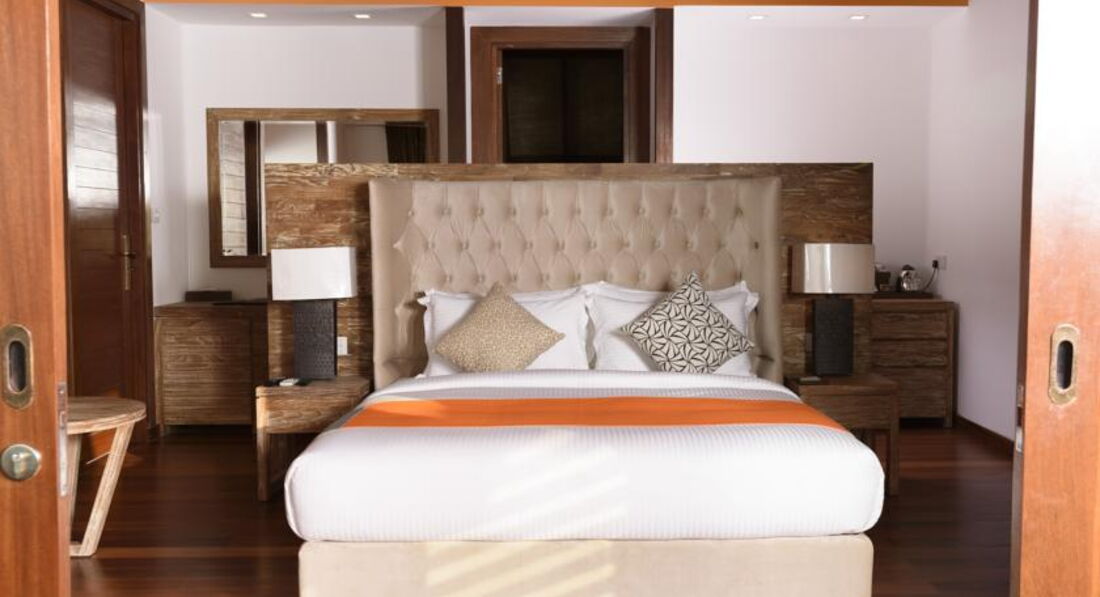 Рік будівництва-2016 р. Загальна площа-35 000 кв. Кількість номерів-40: Beach Villa (49 кв.м., невеликі вілли, які знаходяться прямо на пляжі з прямим доступом до моря. Є приватна веранда з кавовим столиком та затишними місцями для закоханих. У номері велике двоспальне ліжко, підлога відкритий просторий душ, внутрішня ванна.) , Semi Water Villa (52 кв.м., покращені вілли, наполовину розташовані у воді. Є прямий доступ до лагуни, прямо з веранди вілли. Відмінне розташування порадує гостей цих вілл виглядом найкрасивіших заходів сонця над індійським океаном. Велике двоспальне ліжко, простора ванна кімната .). Трансфер: 40 хвилин на гідролітаку (з 06.00 до 16.00) або 20 хвилин на літаку внутрішніх авіаліній до аеропорту Дараванду + 30 хвилин на швидкісному катері.