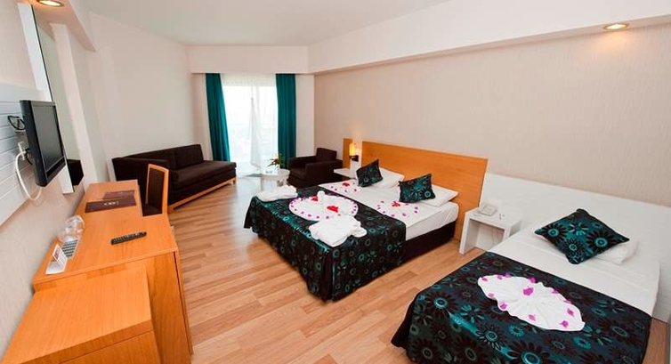 Отдыхали с детьми (1 год и 3 года) в начале августа 2018 года. У нас была бронь на два двухместных стандарта, за благодарность дали номера друг на против друга и по количеству кроватей поняли, что трёхмерные. Когда заселись в номер обнаружили что шкаф поломан, дверь выпала прямо на младшего ребёнка. Починили только с третьего раза! Очень понравилось питание. Всё очень вкусно и разнообразно. Всегда находила, чем накормить детей. Алкоголь неплохой. Уборка в номерах плохая, пока не попросишь, то не уберут. Персонал в основном угрюмый, почти не улыбается. Один официант в ресторане вообще послал нас на турецком языке, когда мы попросили принести ещё колы. Думал мы не поймём! Очень не приятно было, вечер был испорчен. Территории нет, анимация есть, но только вечером. За 10 дней была пенная вечеринка, Восточный базар, живая музыка, в один из вечеров надули батуты и на суше и в бассейне. Детская площадка в плохом состоянии. Пляж далеко и нужно идти в гору, старший сын уставал. Лежаков хватало, хотя мы ими практически не пользовались. Отель маленький и без территории. Для детей практически ничего нет. Очень много людей везде : в бассейне, в ресторане, в море. Младший ребёнок подхватил вирус коксаки, видимо в бассейне.