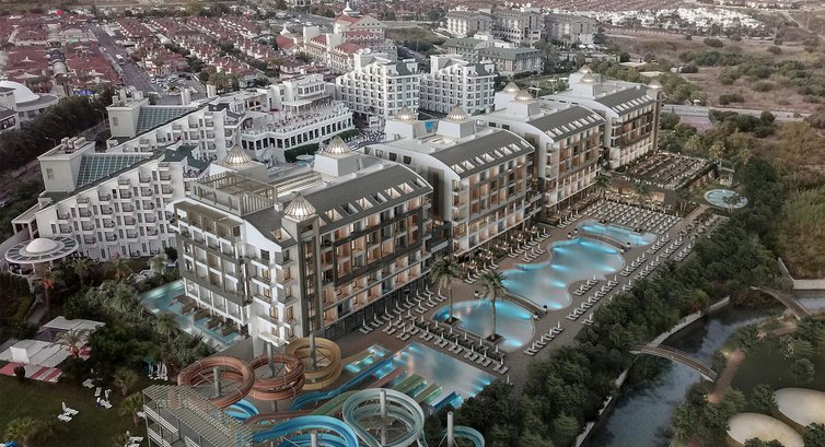 Готель Diamond Deluxe Hotel & Spa 5* (Готель Даймонд Делюкс Готель енд Спа 5*) розташований на березі моря, за 12 км від центру м. Сіде, за 55 км від аеропорту м. Анталія, за 65 км від центру м. Анталія. Загальна площа готелю Diamond Deluxe Hotel & Spa 5* складає 22 500 м2. Готель відкритий у 2020 році.