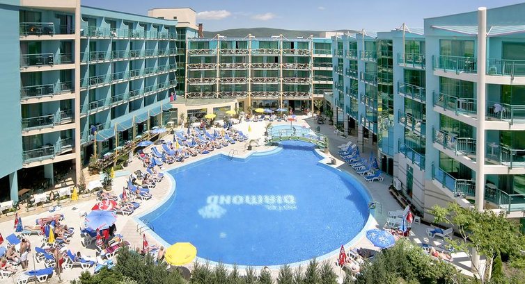 Отдыхали 2-мя семьями нашему карапузу 3 года и друзья с детьми 2 и 6 лет. Не думала писать отзыв, но выбирая место отдыха на этот год решила посмотреть,что пишут про отель, который нам понравился. Я не понимаю этих людей которые ставят 2. Мы в Болгарии были 5 раз в разных отелях, и скажу честно Diamond уж точно не хуже остальных. А теперь о плюсах. Мы добрались до отеля в 10 утра и нас сразу расселили (хотя по предыдущим поездкам мы знали, что заселение после 14.00) - приятный +. Месторасположение все в шаговой доступности магазины, кафе, набережная и т.д. До пляжа минут 7 хотьбы по центральной улице. Номера обычные не хуже не лутше чем в других отелях. Все , что надо имеется (кондиционер, холодильник, телевизор...) У нас был вид на горы (мы попросили, чтобы тихий) Питание было по системе "все включено" в целом остались давольны т.к. с маленькими детьми особо по кафешкам не находишься. Хотя пару раз мы ужинали в кафешках. На завтрак всегда была каша для ребенка, омлет , хлопья, пару видов колбасы, сыр, овощи , ну вобщем завтраки стандартные. Обеды тоже 2 вида супа, несколько видов горячего, салаты - поесть можно. На ужен уже вкуснее! Напитки: вода, кола,фанта,спрайт, содовая, разведенный "Инвайт" , пиво (муж сказал не плохое), вино бело, красное ( но белое лутше) и еще какие-то бутылки, мы особо не пьющие. Персонал очень приветливый. Всегда улыбается и готов помочь.